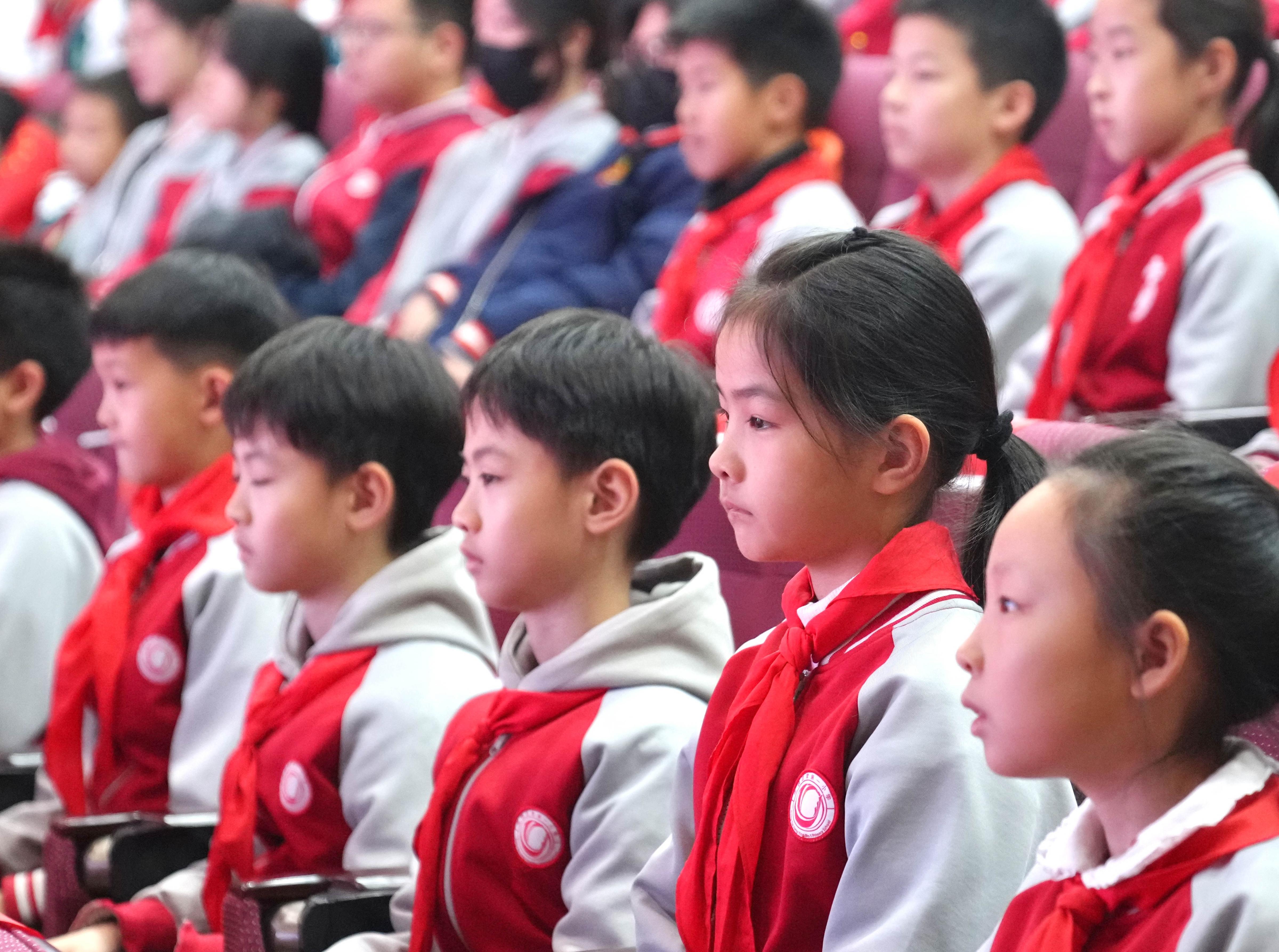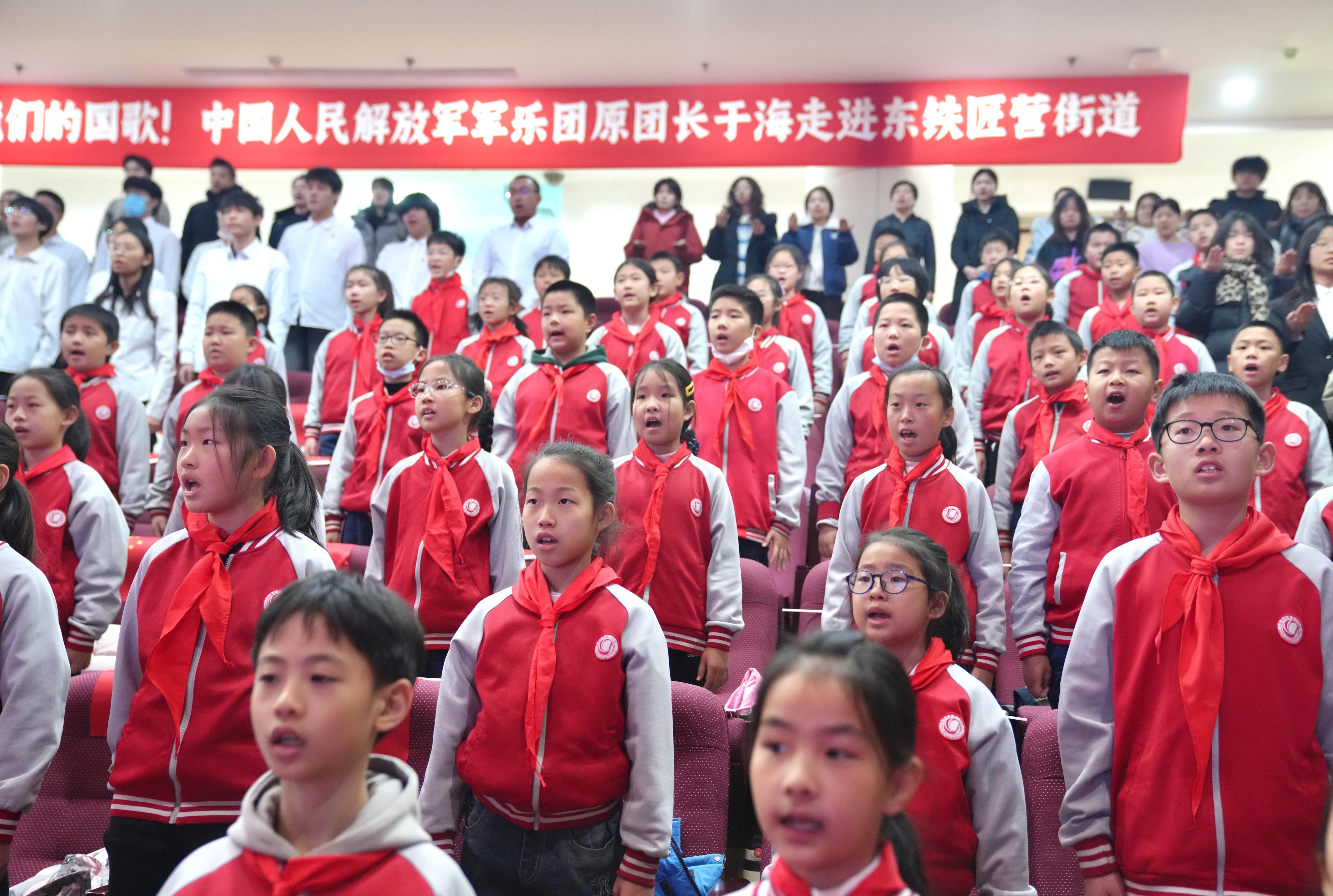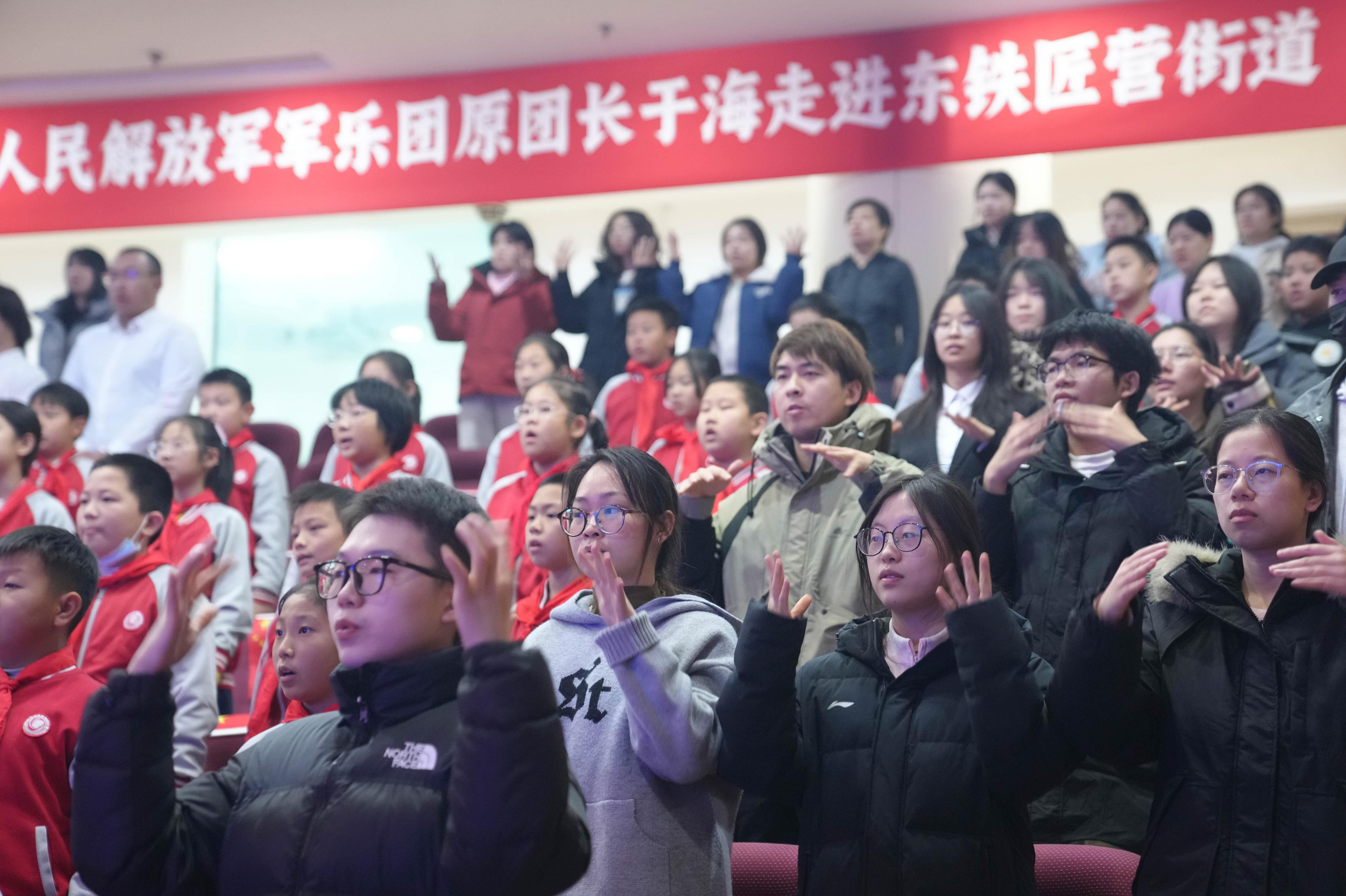 这堂“大思政课”上,曾多次在国家重大庆典活动上担任乐团指挥的中国人民解放军军乐团原团长于海,开启了他的第443场宣讲。他不仅带领孩子们回溯了《义勇军进行曲》在烽火岁月中诞生的历程,还将他50年来连续参与国家重大庆典活动以及为《中华人民共和国国歌法》立法奔走呼吁的坚守娓娓道来。