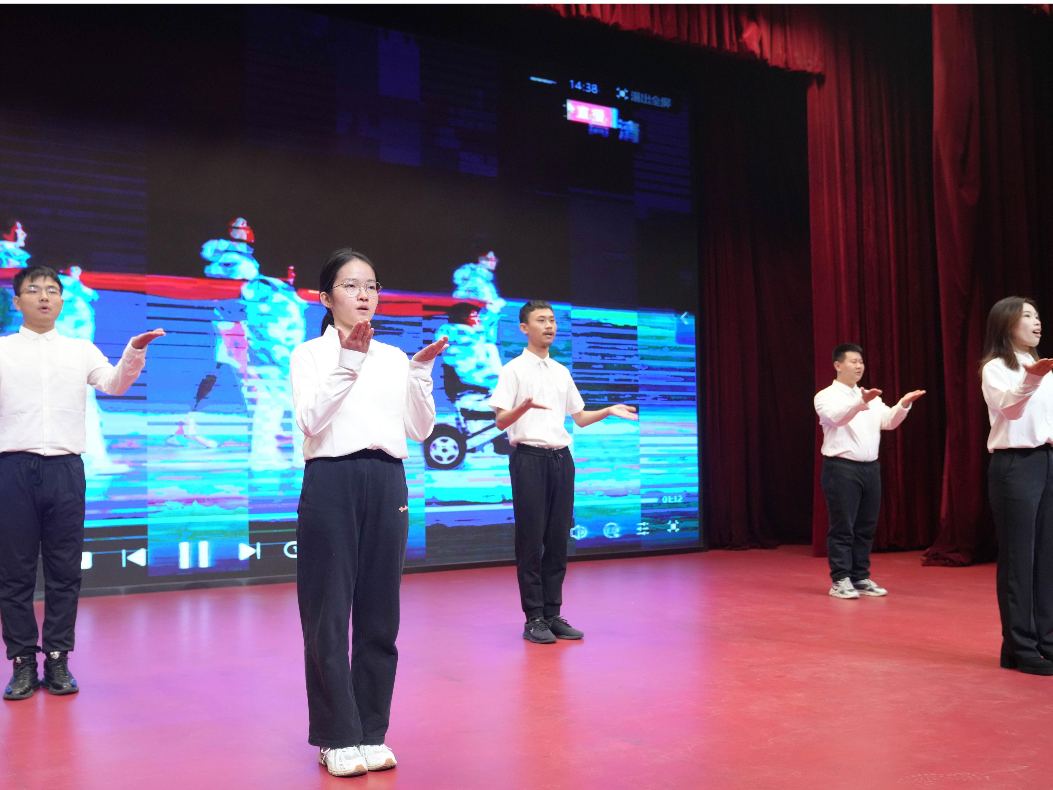 这场“大思政课”开在北京联合大学特教学院报告厅内。台上台下用标准的国家通用手语“唱”国歌的,就是特教学院的师生们,他们曾把手语国歌“唱响”在2022年冬残奥会开幕式上。