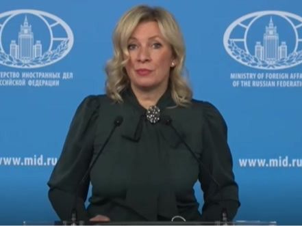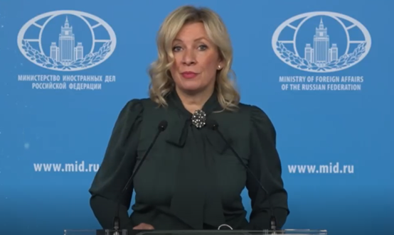 扎哈罗娃25日主持记者会 图源:俄媒视频截图