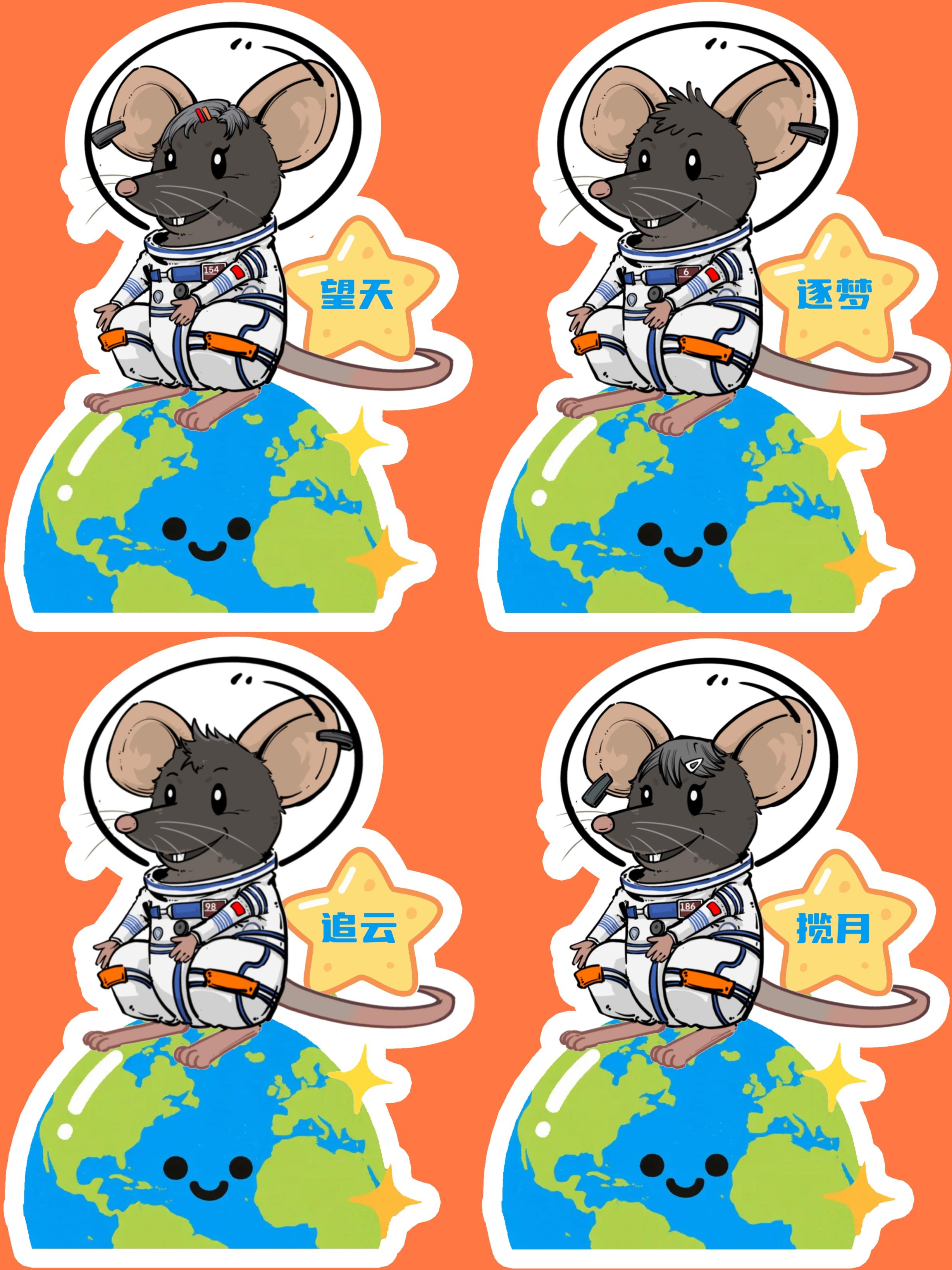 12月27日,在“航天小鼠飞天记”主题科普活动上,科研团队公布了4只“太空小鼠”的新名字——“望天”“逐梦”“追云”“揽月”。它们还拥有了专属卡通形象,4只小鼠身着白色航天服,胸前标注了各自的编号。