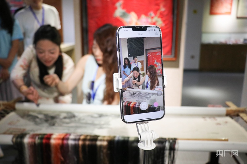 在江西新余,夏布绣针法受到年轻游客欢迎(央广网记者 刘培俊 摄)