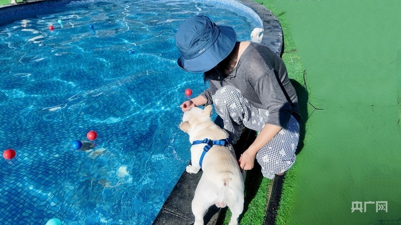 内蒙古呼和浩特宠物乐园内,消费者带着宠物在泳池边玩耍(央广网记者 刘晓祺 摄)