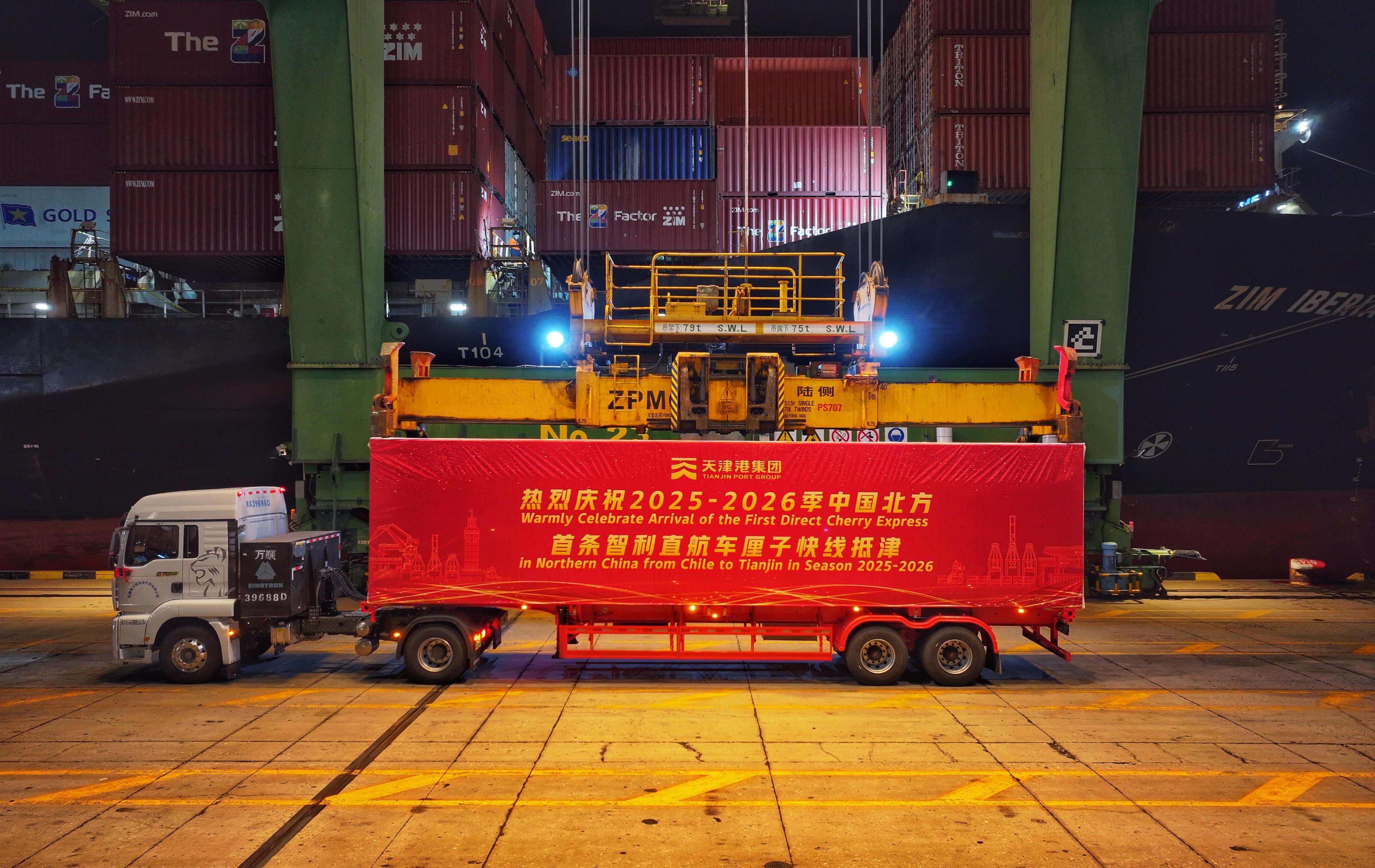 1月1日晚,随着载有314个集装箱、重约6600吨智利车厘子的“以星伊比利亚”轮靠泊天津港太平洋国际集装箱码头,天津港在新年首日迎来2025至2026产季中国北方首船智利进口车厘子,为京津冀消费者带来舌尖上的鲜甜。