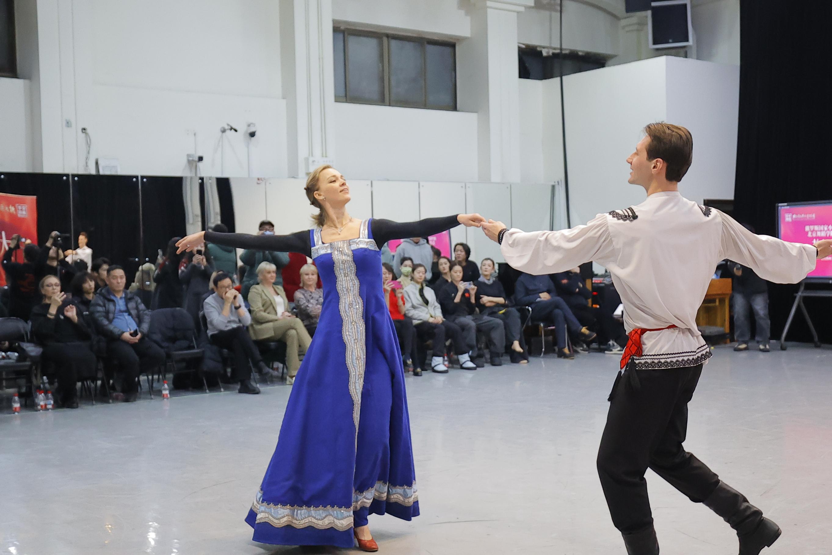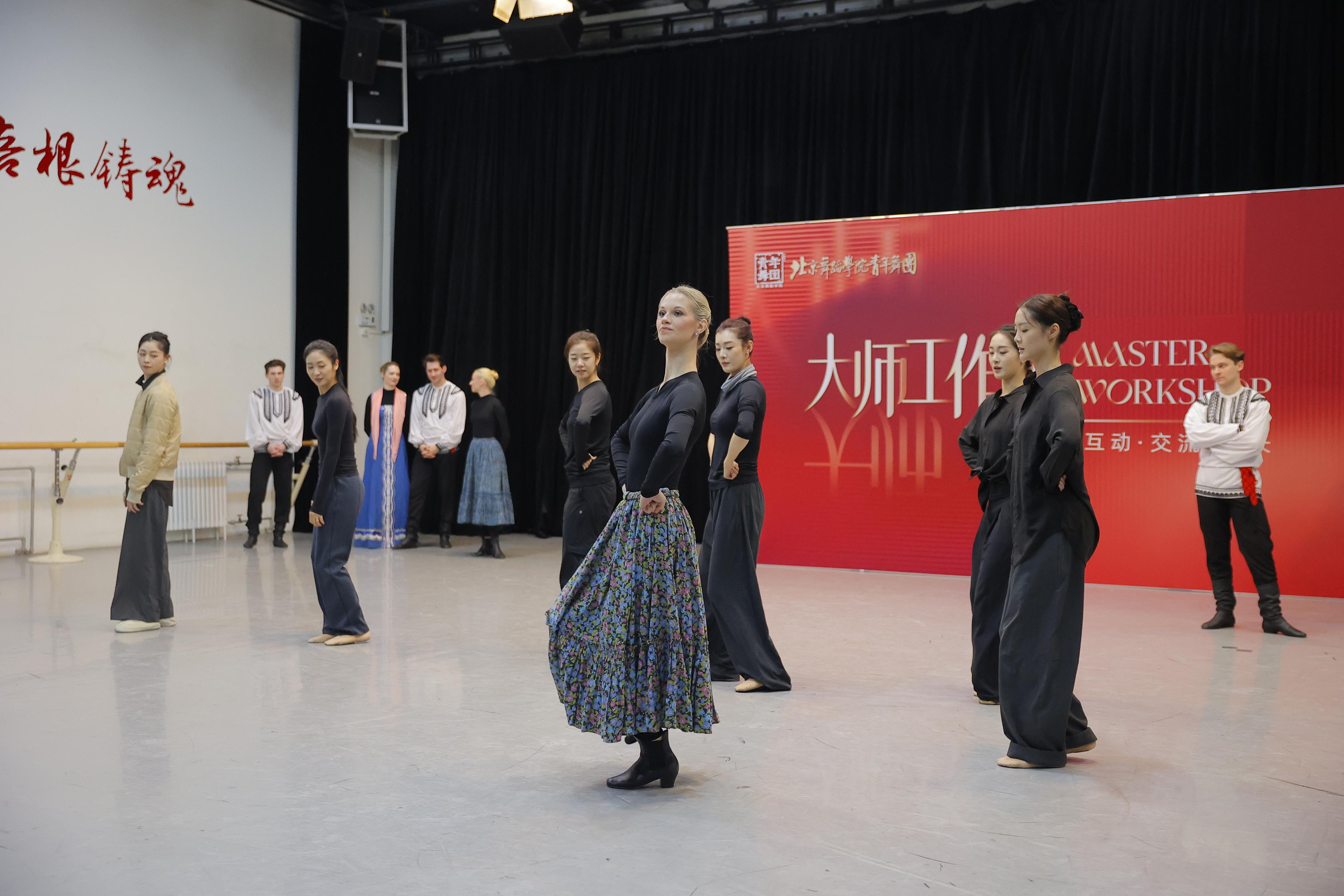 本次交流活动的亮点之一是两团的互动教学展示环节。“小白桦”舞蹈团艺术总监伊琳娜·冈诺娃指导北京舞蹈学院青年舞团的女演员,细致教授了俄罗斯民间舞蹈中极具特色的行进跳跃技巧。北京舞蹈学院青年舞团演员刘敬也为“小白桦”舞蹈团的男演员们现场讲授中国古典舞的基本身韵与动作要领。从圆润的云手到沉稳的步伐,俄罗斯舞者们专注学习,不断揣摩中国舞蹈“形神兼备”的美学追求。两国舞者分组练习,快速掌握对方舞蹈精髓的场面,成为整场活动最为生动的画面之一。
