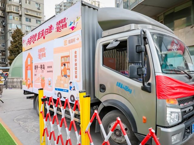 1月7日上午,朝外大街上的金橙子众享驿站前,一辆印有“书香年货·爱满归途”字样的中通快递货车启动。满载的6800册图书,是由辖区居民、企业白领共同捐赠的。它们将跨越1500公里,送往江西寻乌县留车镇鹅湖村——快递员侯佛传的老家。