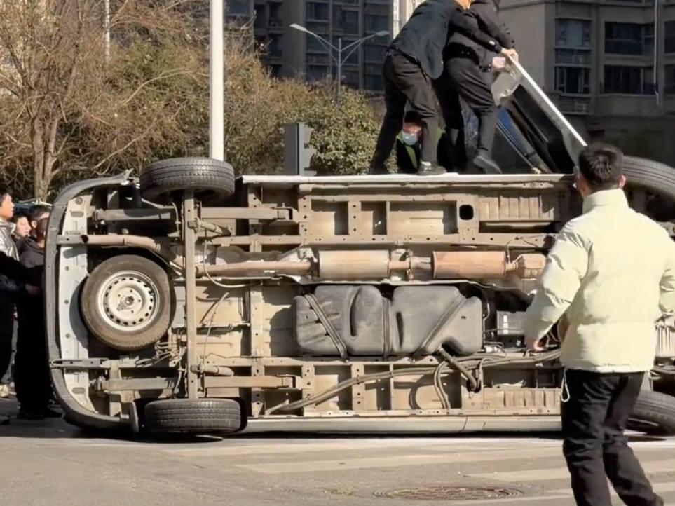 西安救护车遇红灯撞轿车侧翻,警方通报:三名乘车人受伤