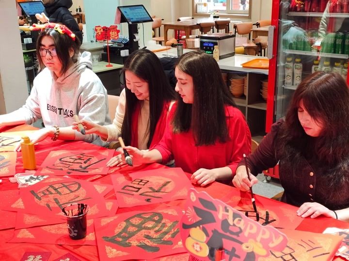 参与活动的市民中不乏外国友人的身影。来自外交学院的留学生也来到现场,在志愿者的引导下亲身体验传统年俗。来自塔吉克斯坦的悦悦第一次写毛笔字,在老师的指导下多次尝试后,终于写出了一个端正的“福”字,悦悦兴奋地说:“福是中国文化中最美好的祝福,我要用它装饰宿舍,把这份亲手创造的‘福气’带给朋友们!”