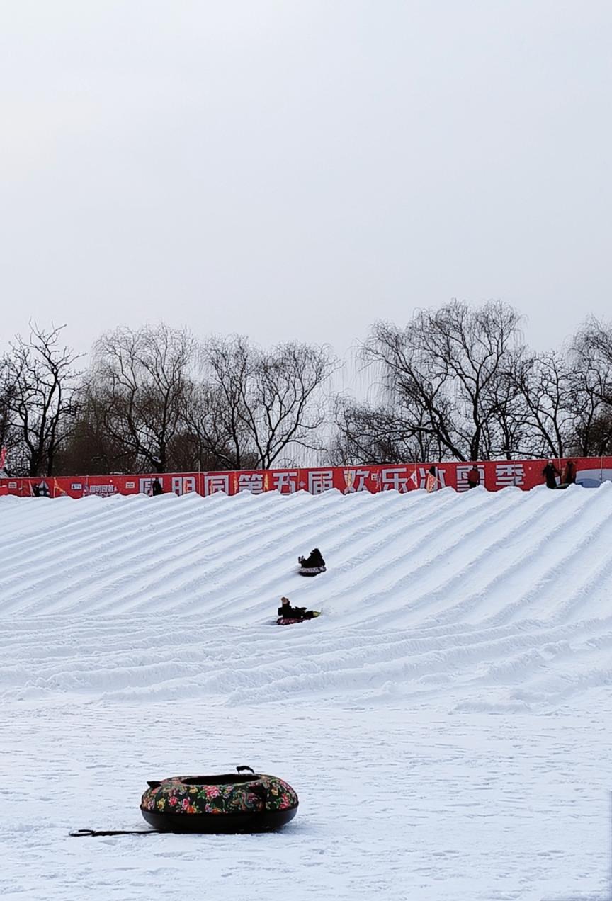 圆明园第五届快乐冰雪季现场十分热闹,冰滑梯、狗拉雪橇、滑雪圈等冰雪项目前已排起长队。该雪场自元旦开业以来,持续吸引游客前来体验冰雪乐趣。