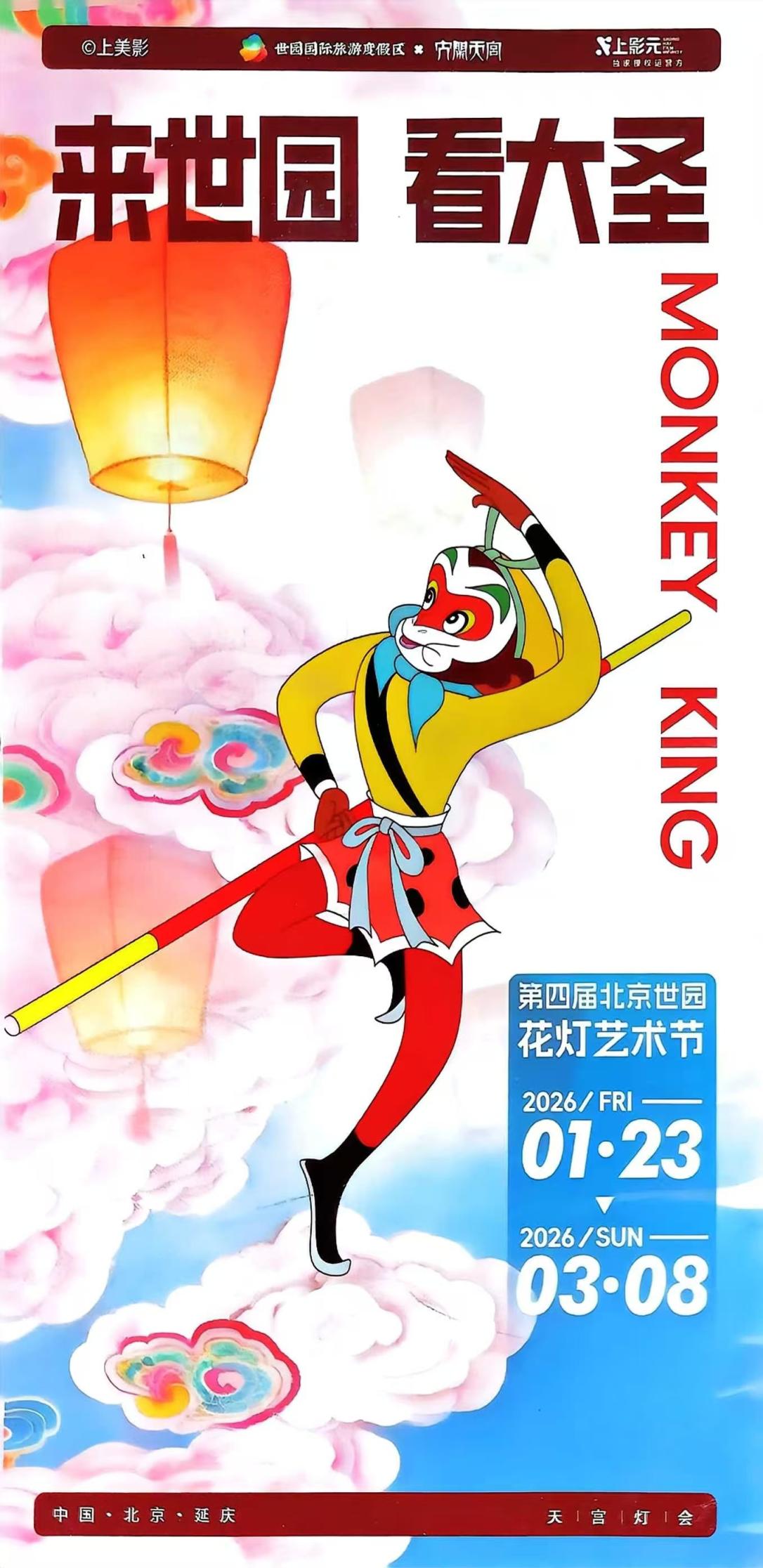 1月23日,世园国际旅游度假区启幕花灯艺术节,非遗花灯技艺生动“复刻”经典动画《大闹天宫》的场景,国民英雄“齐天大圣”将带来精彩演绎。艺术节融合MR互动等现代科技,让观赏者也变为故事的参与者,将持续至3月8日。