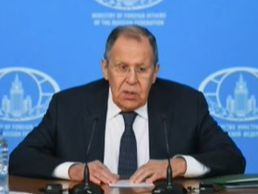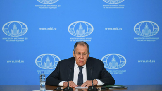 拉夫罗夫在记者会上的画面 图源:俄媒