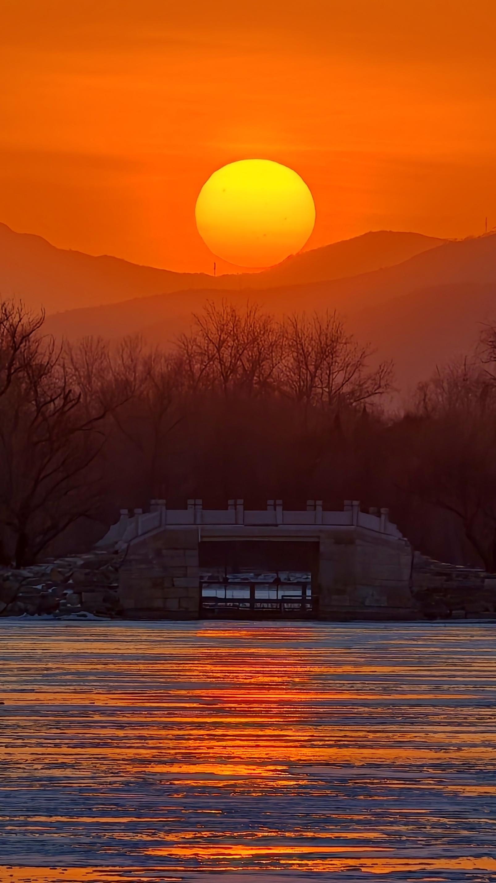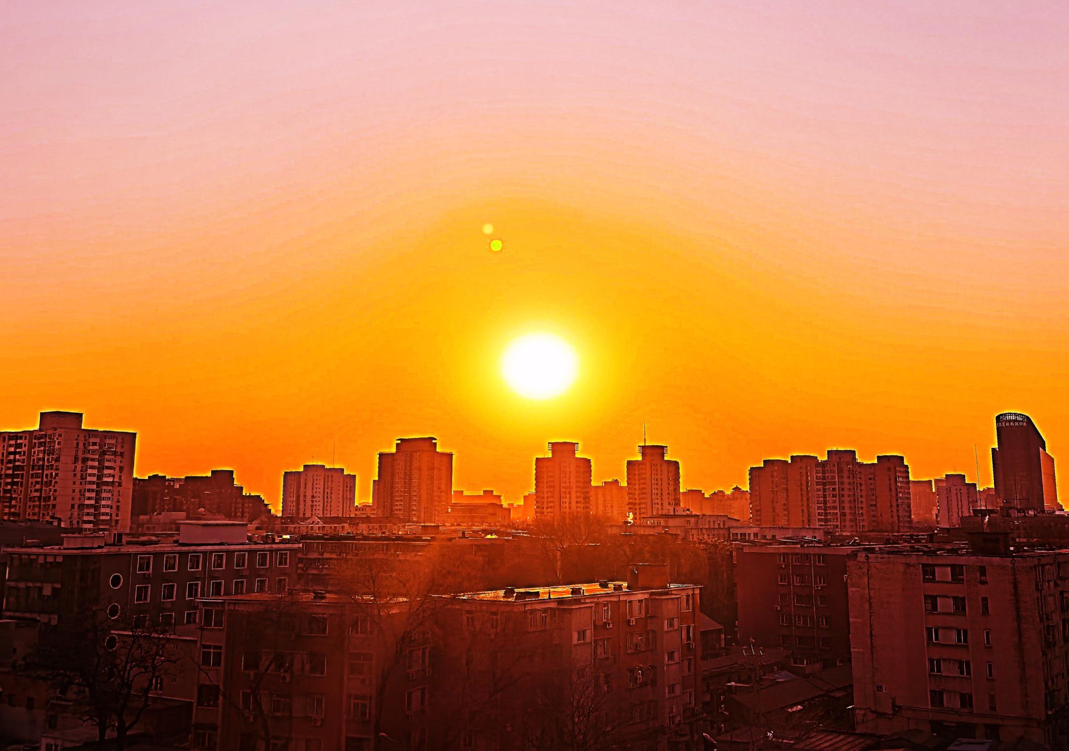 1月22日,北京迎来澄澈晴空。傍晚时分,夕阳如金色气球般悬于城市天际线,云层与晚霞构成天然影棚,随手可拍金色剪影大片。