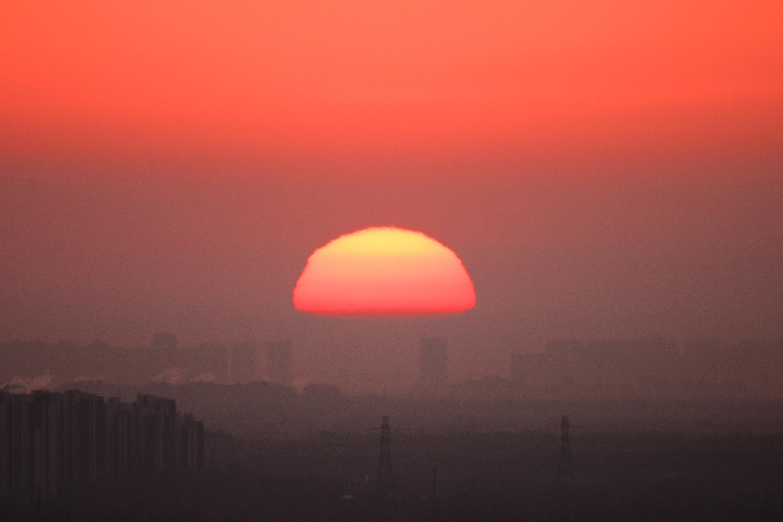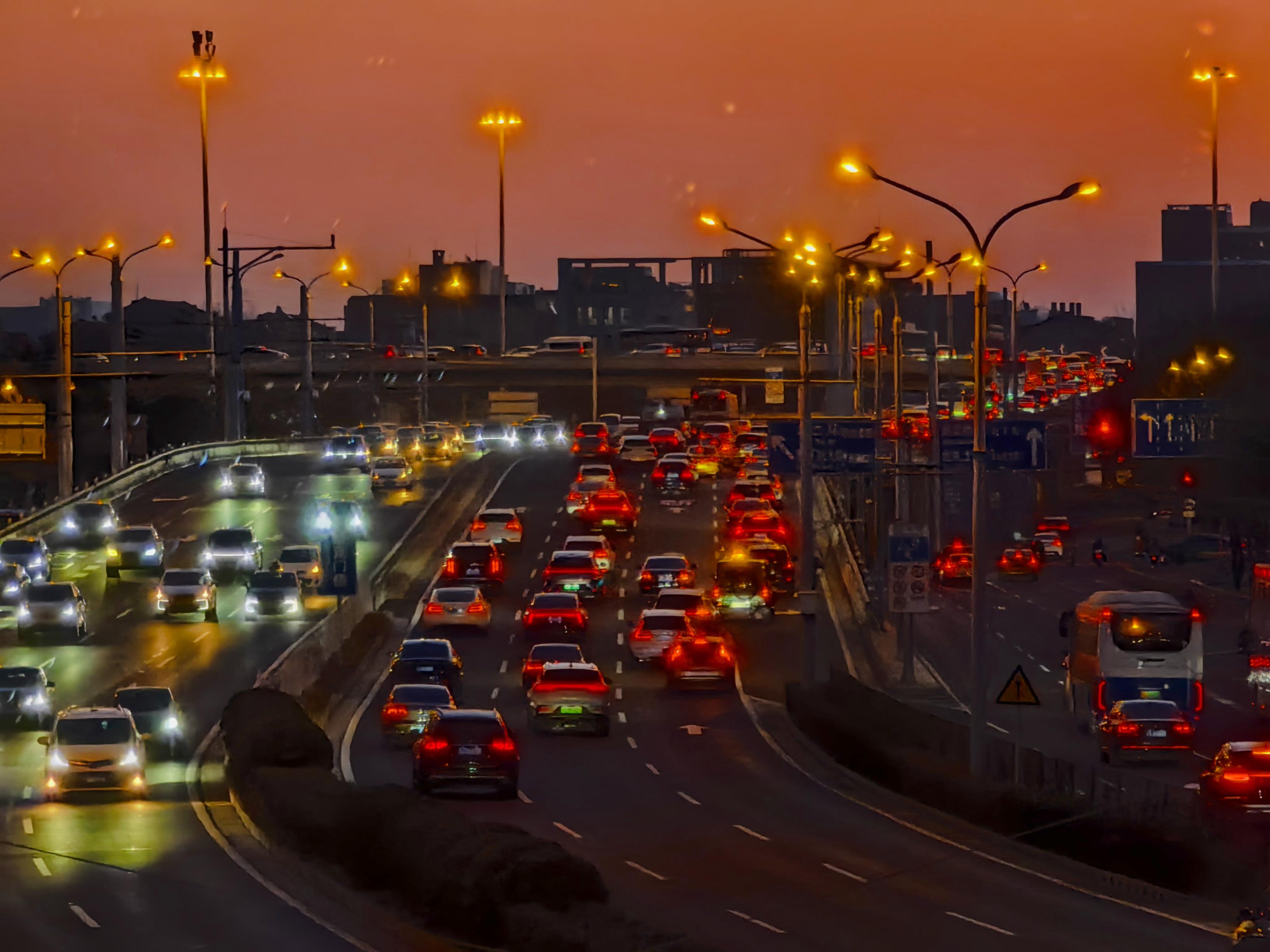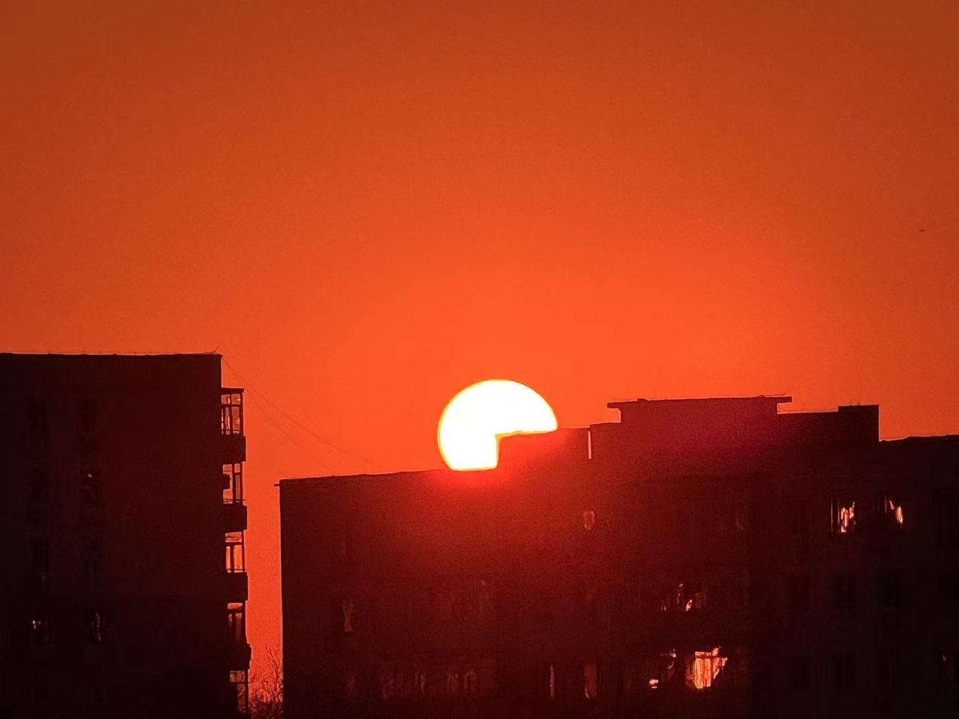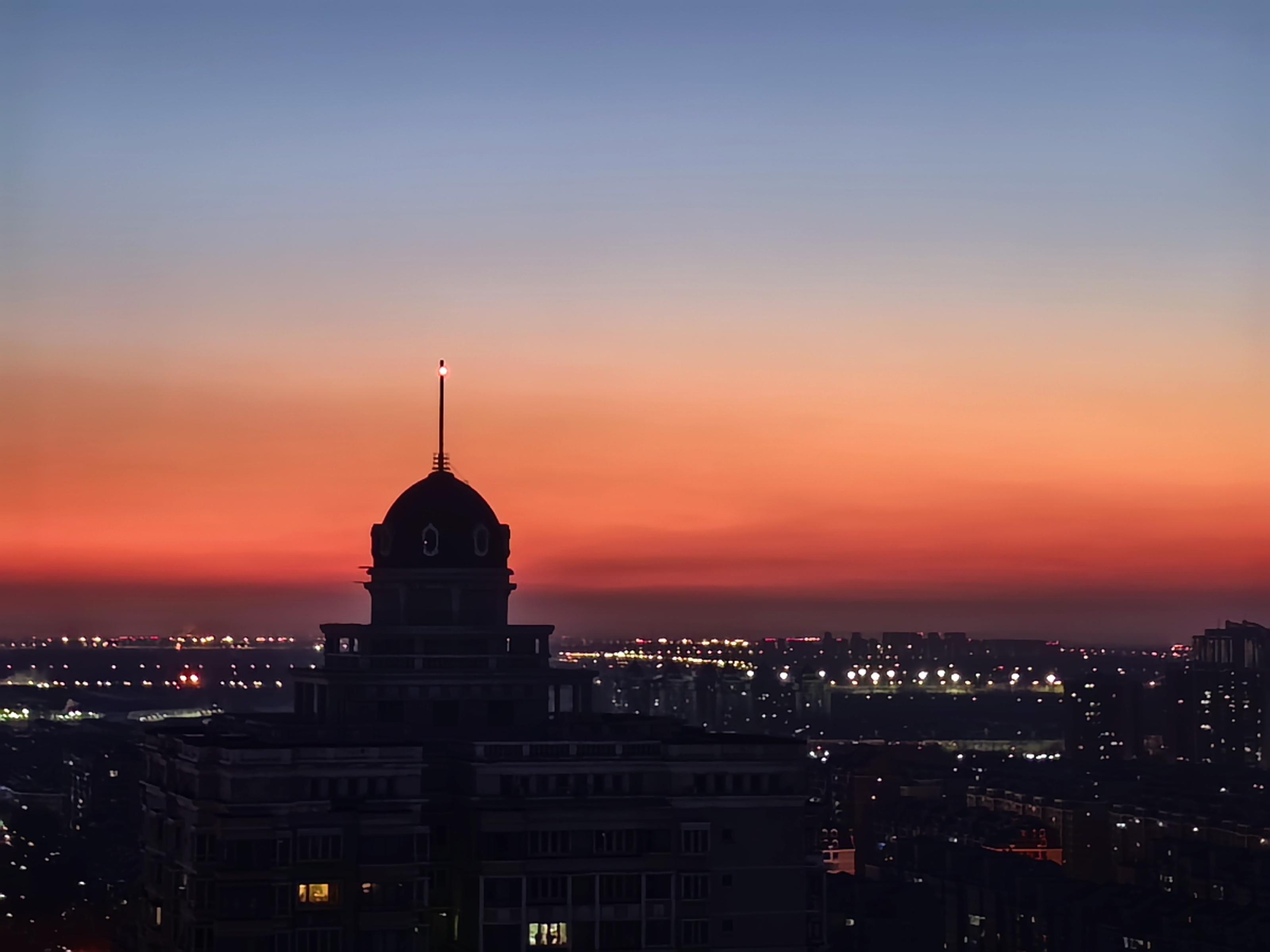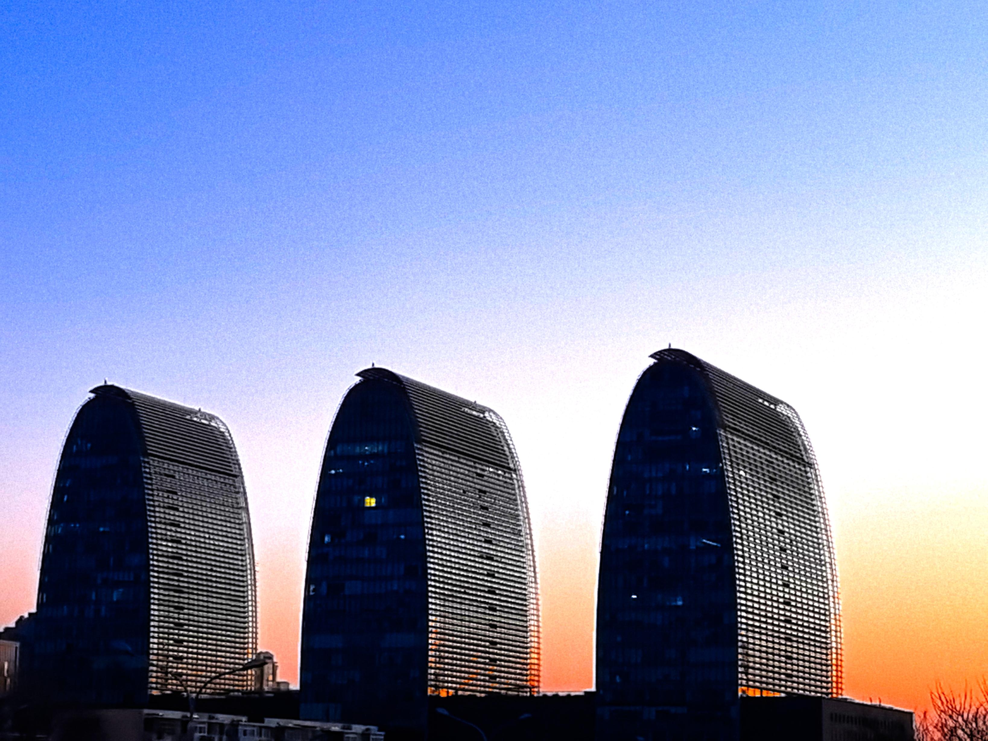 今日清晨,天空像一块巨大的“调色板”。朝霞把天空染成各样的色彩,铺展在北京的天际线上。