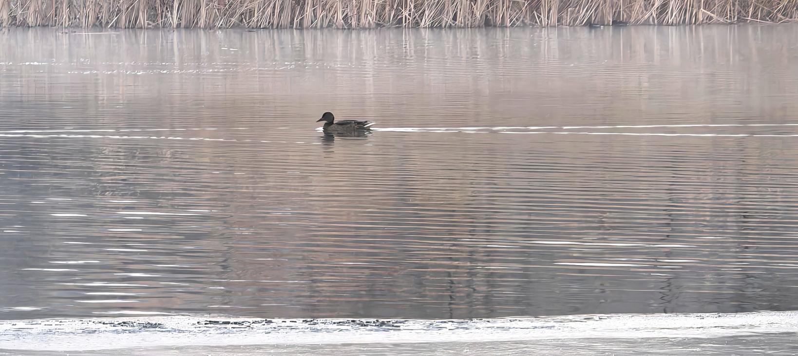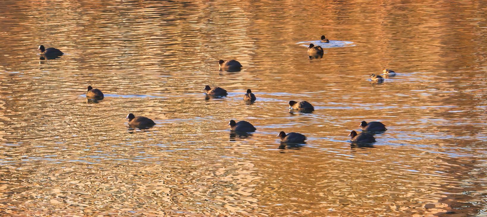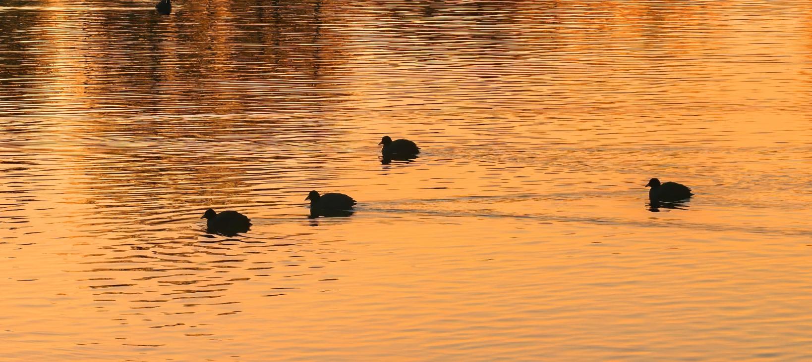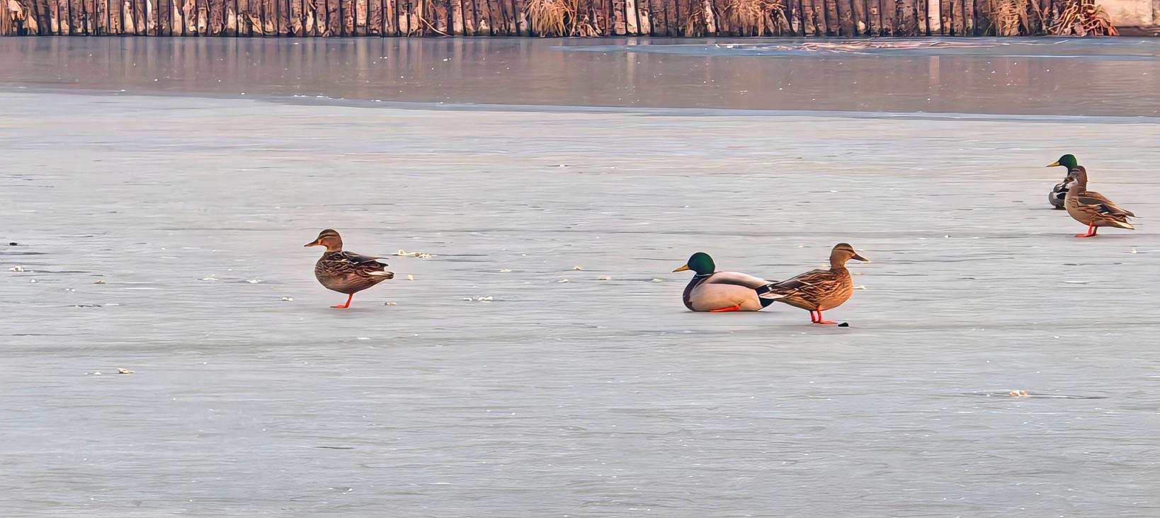 朝阳升起,群鸟冰嬉在通州镜湖上……