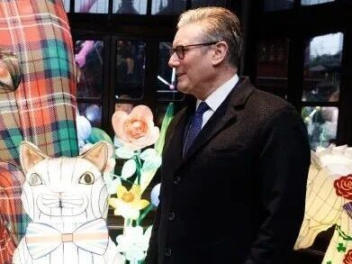 30日下午,英国首相斯塔默在上海御园与小猫拉里的花灯“偶遇”。