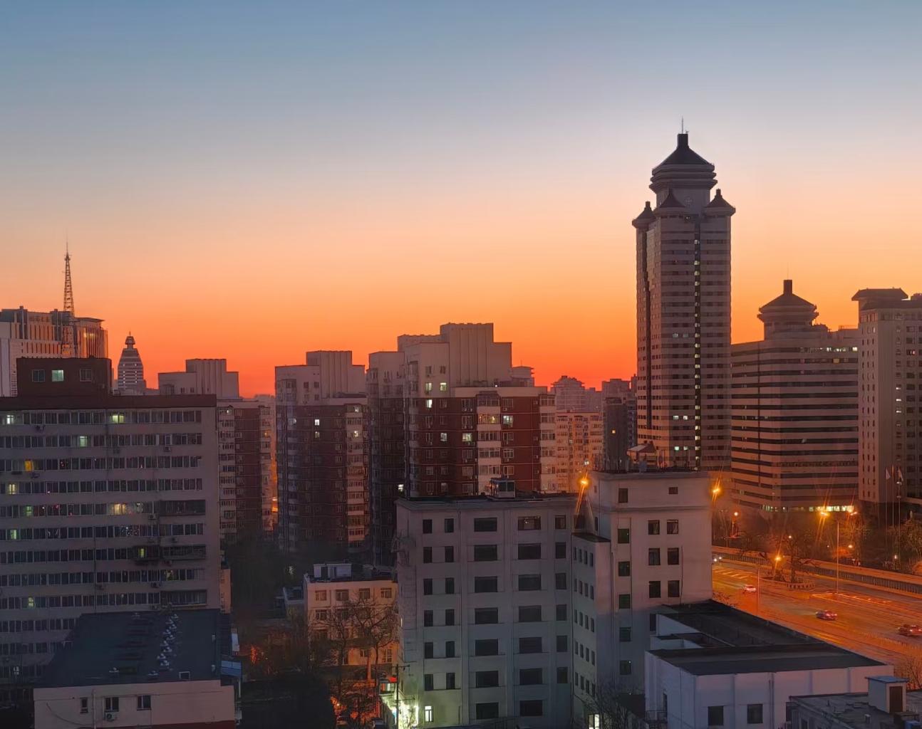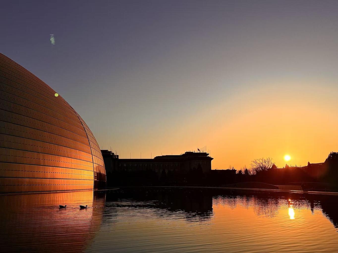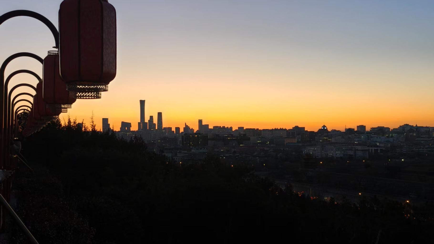 2月11日,南方小年。清晨,月亮的清辉还未退场,温暖的霞光便在地平线上缓缓升起, 为紫禁城的琉璃瓦、现代建筑的玻璃幕墙,都镀上了一层流动、庄严的金边。