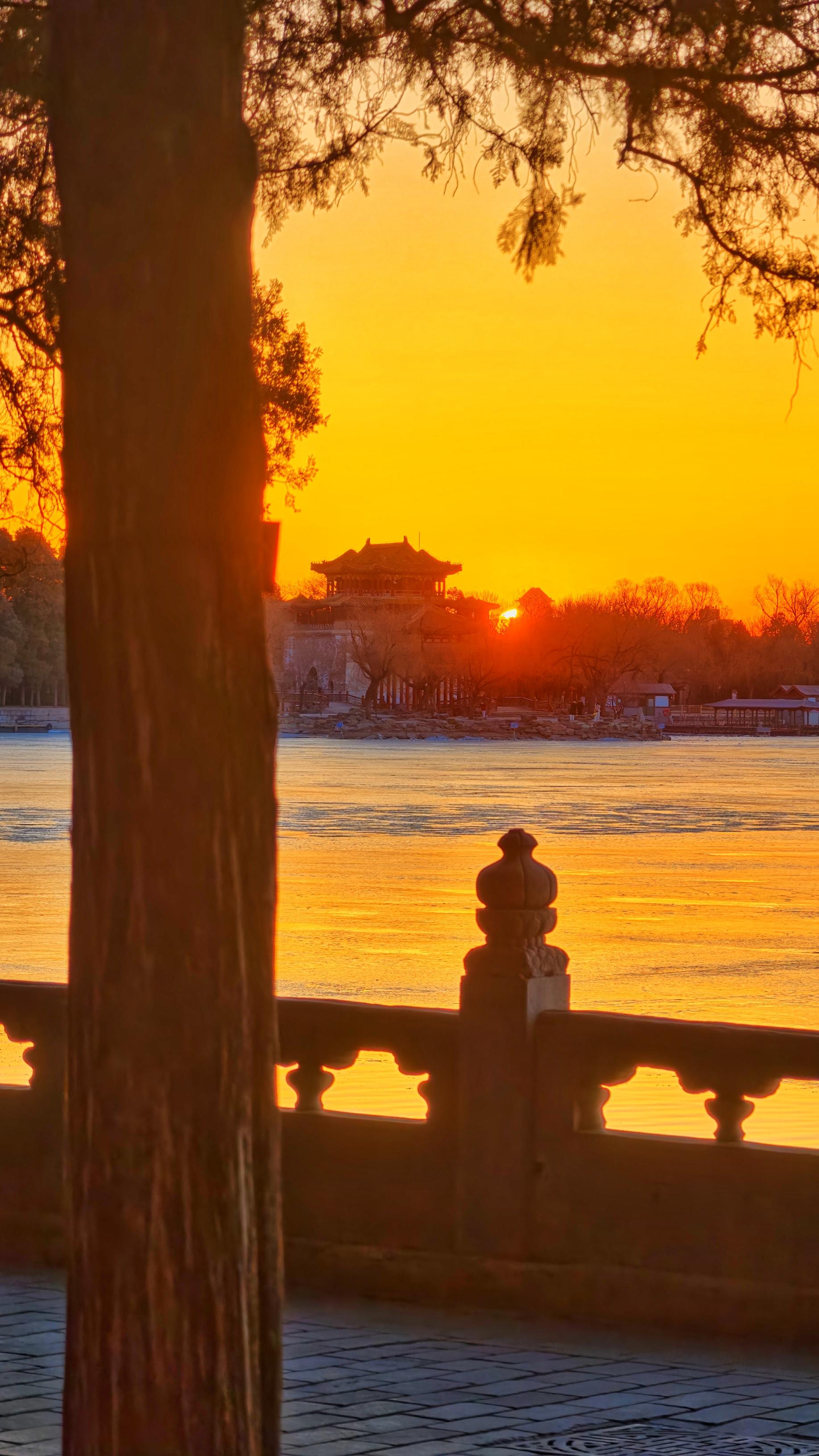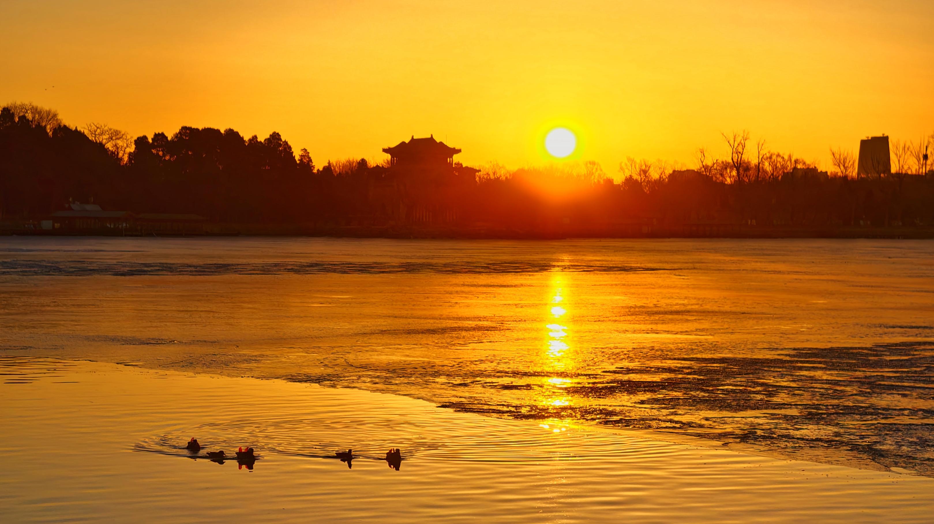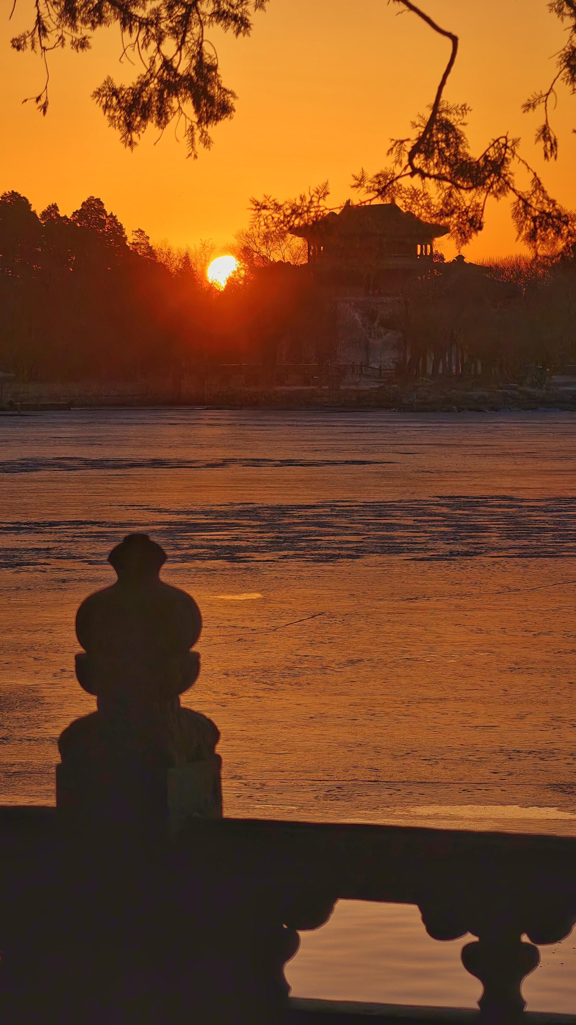 2月11日,南方小年。清晨,月亮的清辉还未退场,温暖的霞光便在地平线上缓缓升起, 为紫禁城的琉璃瓦、现代建筑的玻璃幕墙,都镀上了一层流动、庄严的金边。