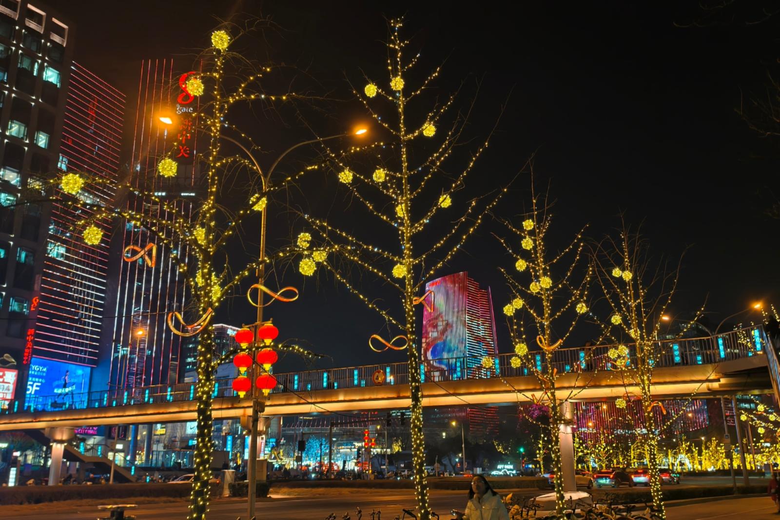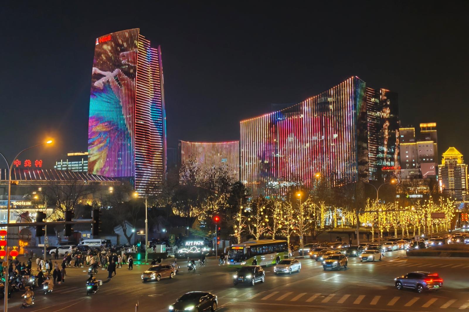 春节期间,每当夜幕降临,一场以“中式福韵”为主题的2026海淀新春光影秀在中关村大街启幕。