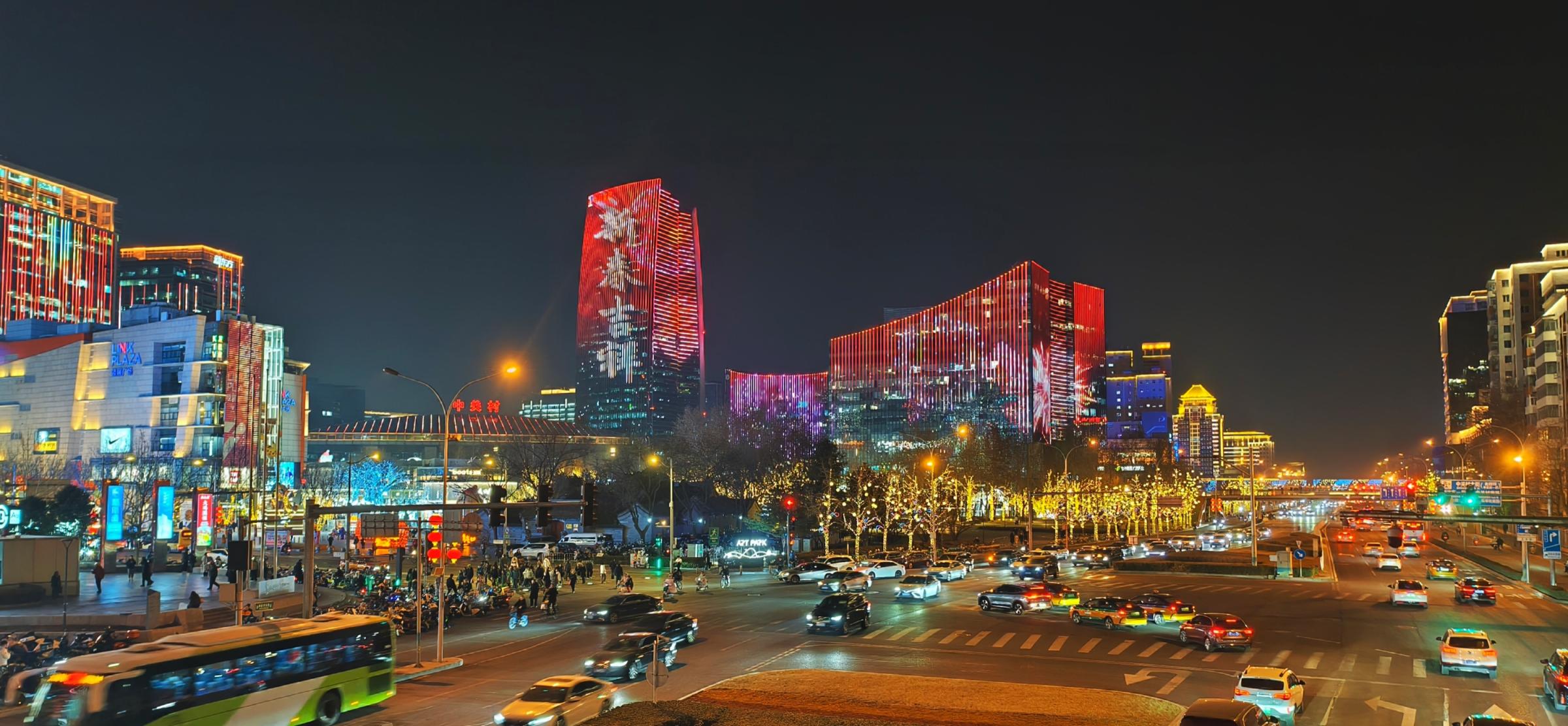 整场光影秀以“海纳百福”与“层攀千瑞”两大篇章展开,运用沉浸式楼体投影、3D裸眼跨楼宇联动等前沿技术将传统祥瑞意象与马年奋进气韵、海淀科创精神深度融合。