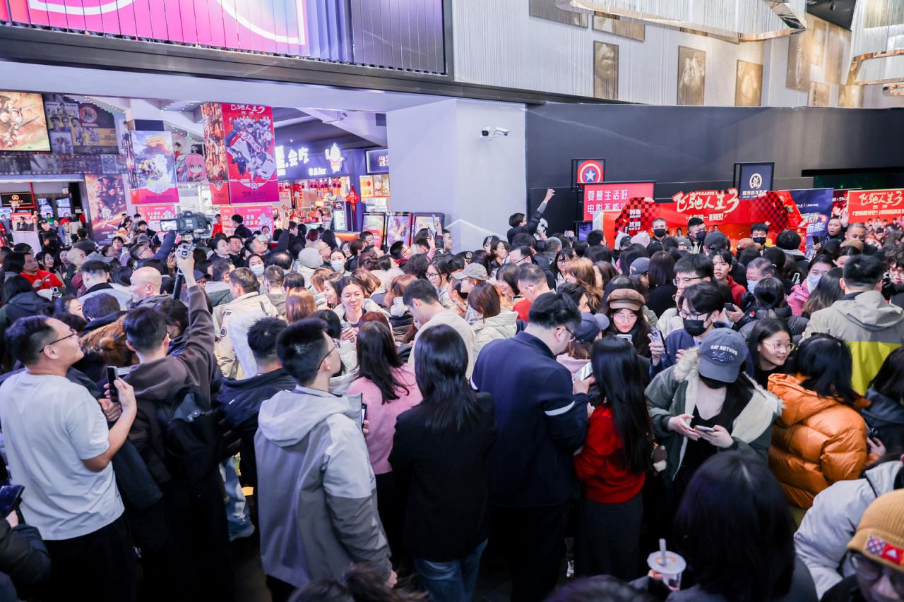 耀莱影城充分发挥Mirra奇镜派对沉浸影游空间优势,举办“Mirra新春抓马挑战赛”,将光影空间与潮玩互动、新春氛围深度融合,为家庭群体和年轻观众解锁新春玩乐新场景。自大年初三起,引入科技庙会“当家花旦”小K机器人驻场助阵;大年初四成龙先生亲临现场,邀请留守儿童家庭等特殊群体观影体验,以公益行动传递新春温暖,同步带动影城人气与口碑双提升;大年初五财神爷、兔爷人形机器人轮岗、机器人舞狮表演,让传统民俗在科技赋能下“活”起来,成为市民游客争相打卡的新热点。百人合唱的“名场面”吸引众多观众,国际友人慕名而来,由衷赞叹中国年的文化魅力。春节假期,影城共接待观众6.29万人次,票房收入357.52万元,观影人次及票房位居全国榜首。