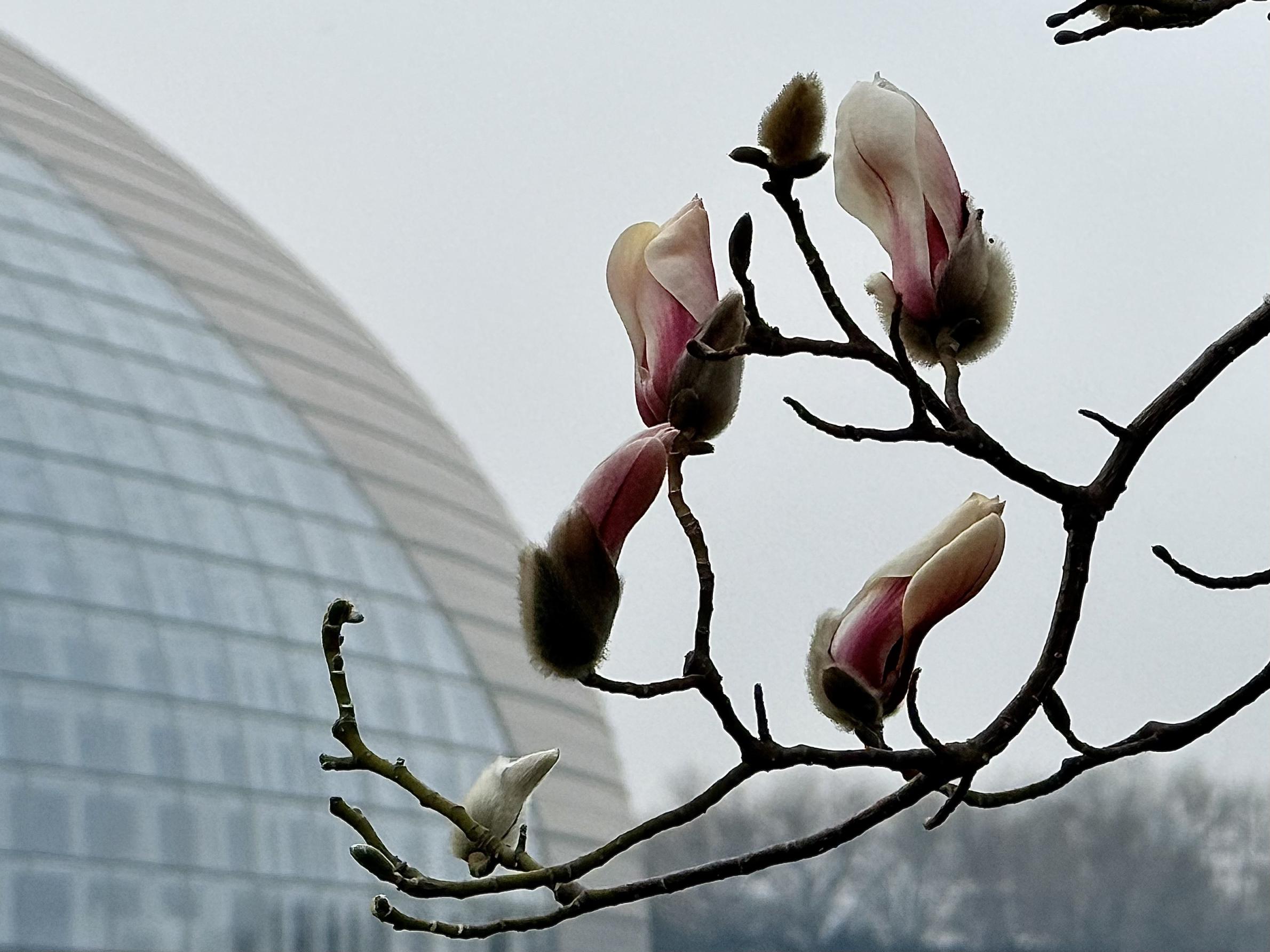 正月初十,十全十美。大剧院的玉兰开了,开在湿冷的春风里,空气中已弥漫着春天的气息。