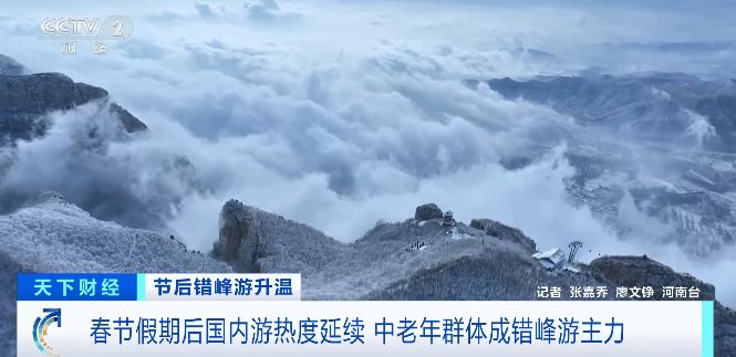 在河南云台山,雨雪过后云海翻涌,群峰若隐若现。数据显示,节后景区客流短暂回落后逐步回升,日均接待游客约1.3万人次,其中60岁以上游客占比约三成。