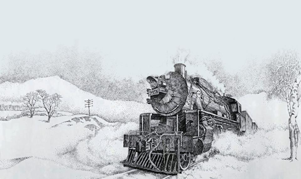 为了捕捉火车最真实的状态,王忠良成了火车站和铁路沿线的“常客”。他常常凌晨就背着画板出发,在铁轨旁找好观测点,一等就是一整天,观察不同时间的光影变化如何在机车上流转。夏天,铁轨被烈日炙烤得发烫,他的汗水浸湿了画板;冬天,寒风像刀子一样刮过脸庞,他的手指冻得僵硬,唯有钢笔不肯放下,“太冷了,喝口热水,缓缓,接着画。”为了看清细节,他尽可能在安全范围内靠近观察,有时蒸汽机车行驶时,掉落的煤炭粒会烫到素描本,甚至在纸上烫出小洞,而他早已习以为常:“这是火车给我的‘签名’,是最真实的时代印记。”