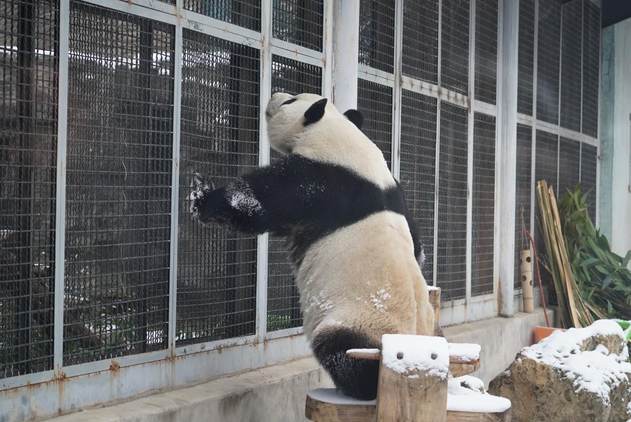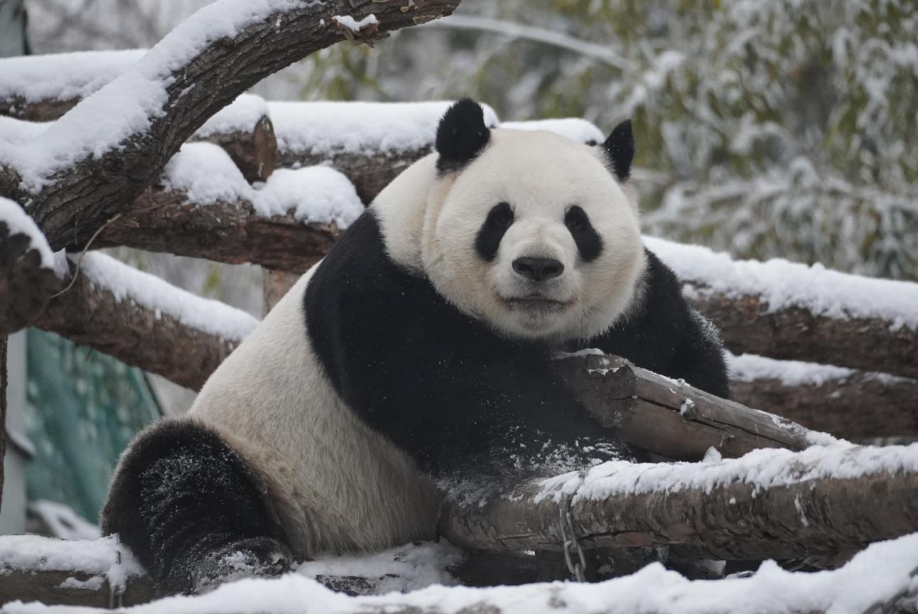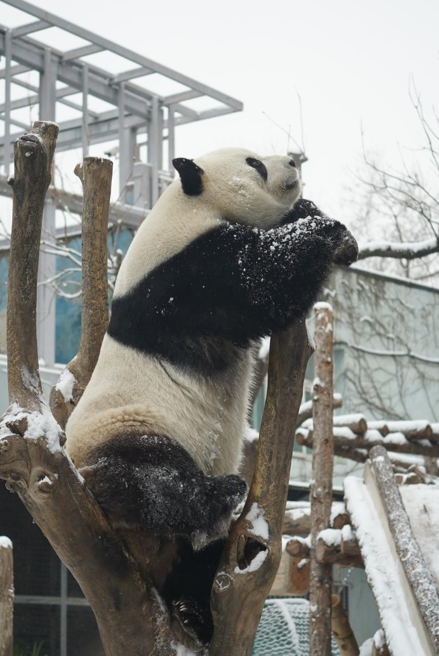 3月5日,雪后的北京动物园银装素裹。大熊猫萌兰看到白雪也兴奋不已,在雪地里登高爬低,尽情打滚玩耍,化身“糖霜小熊”,模样憨态可掬,萌化市民游客。