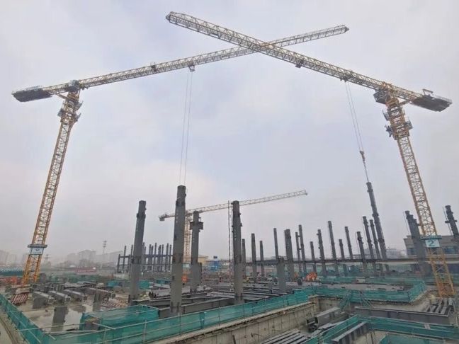 在医疗综合楼门诊区域,工人们正相互配合,进行首节钢柱吊装作业。随着塔吊的精准起吊、平稳到位、牢固安装,一根根钢柱有序矗立,为工程建设筑牢坚实骨架。