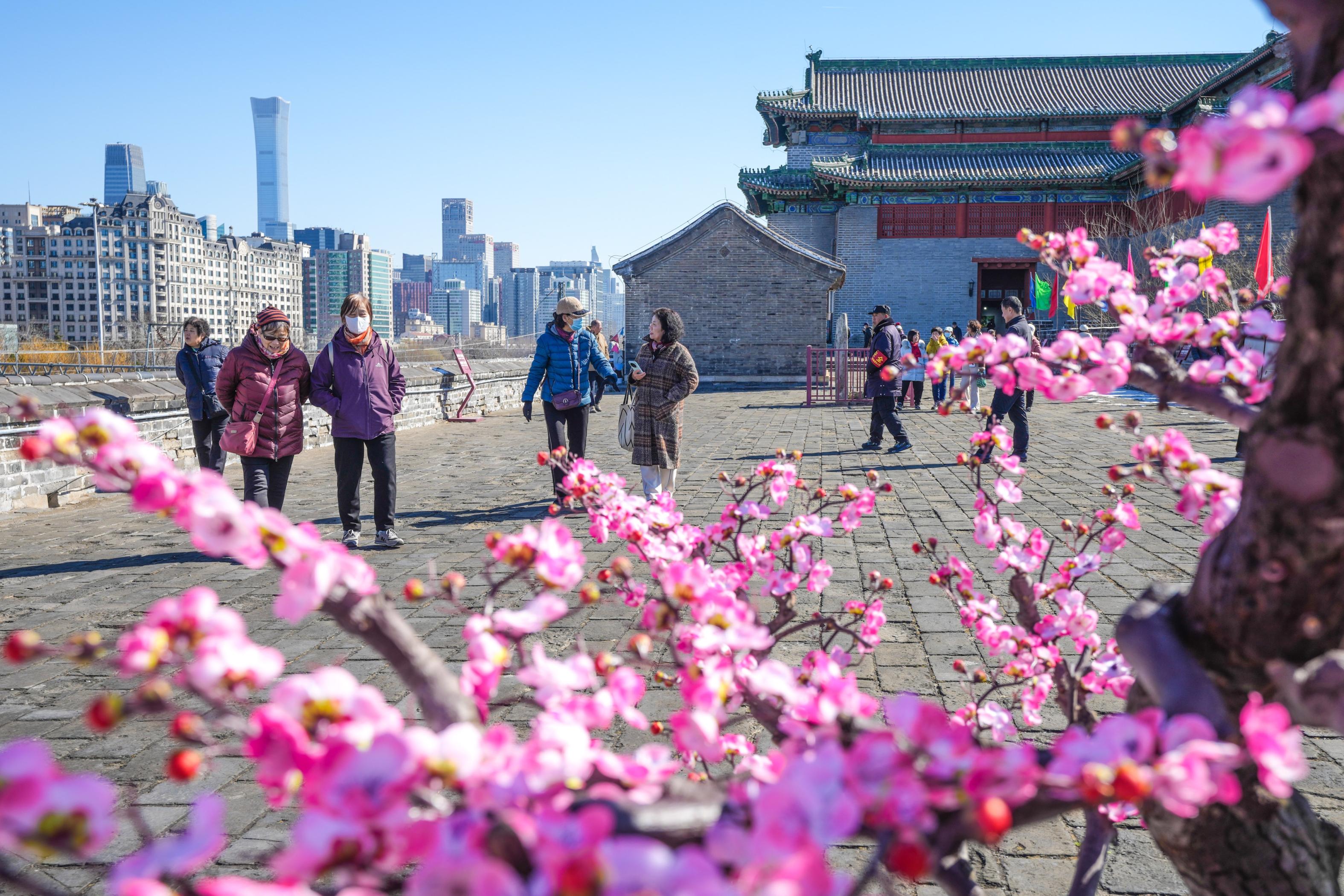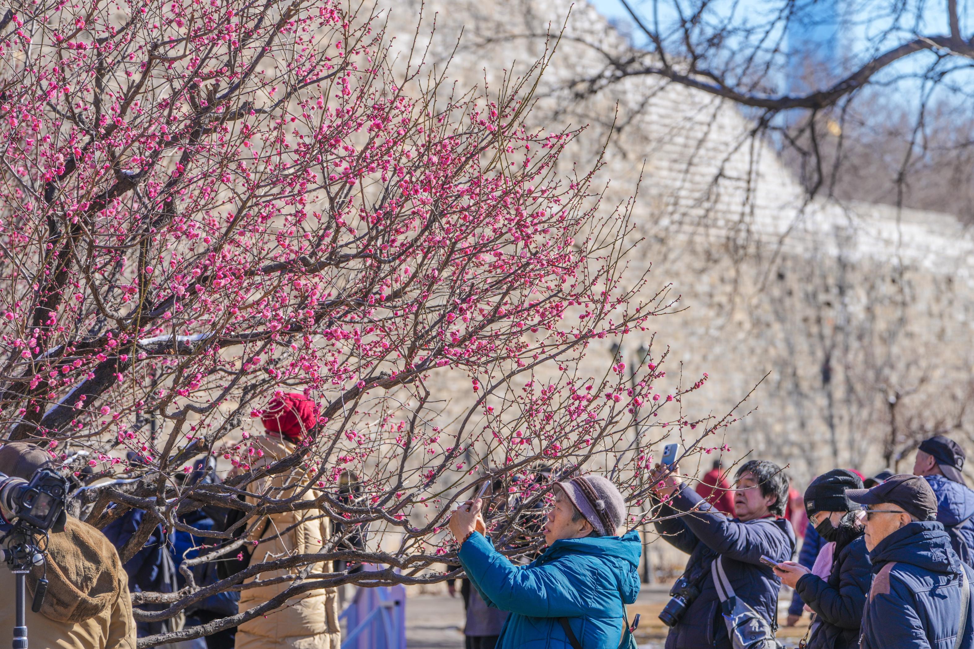 3月6日,第十九届北京明城墙梅花文化节如期而至。本届梅花节以“明城春始·共赴梅好”为主题,市民游客能在城墙脚下嗅梅香、赏梅韵,还能在城意梅好市集、梅好手作市集、站前好物市集逛吃,参与手作、集福等互动活动。