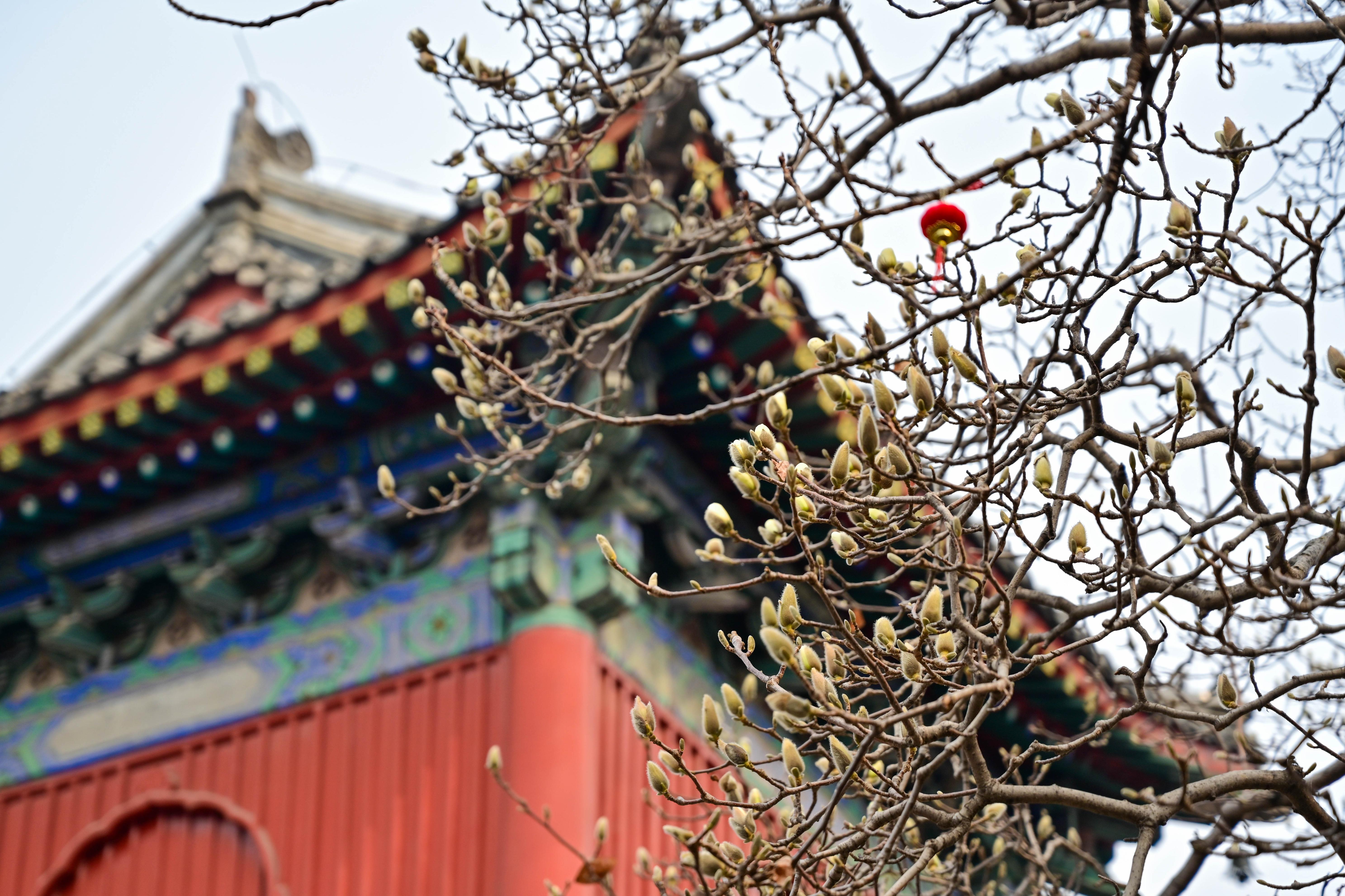 万寿寺中路院内,玉兰花苞爬上枝头,为古建筑增添了几分诗意与生机。9时许,观众三五成群进馆,大多直奔玉兰树下,举起手机、相机,寻找春光最佳拍摄角度。“经常刷到有人说这里是北京春天的‘顶流’打卡地,我特意约了朋友赶早来。”观众陈女士笑着说,“虽然还没到玉兰盛放的时候,但我和朋友也拍得很尽兴,花影与红墙格外搭配,我们打算过几天再来欣赏满院春色。”