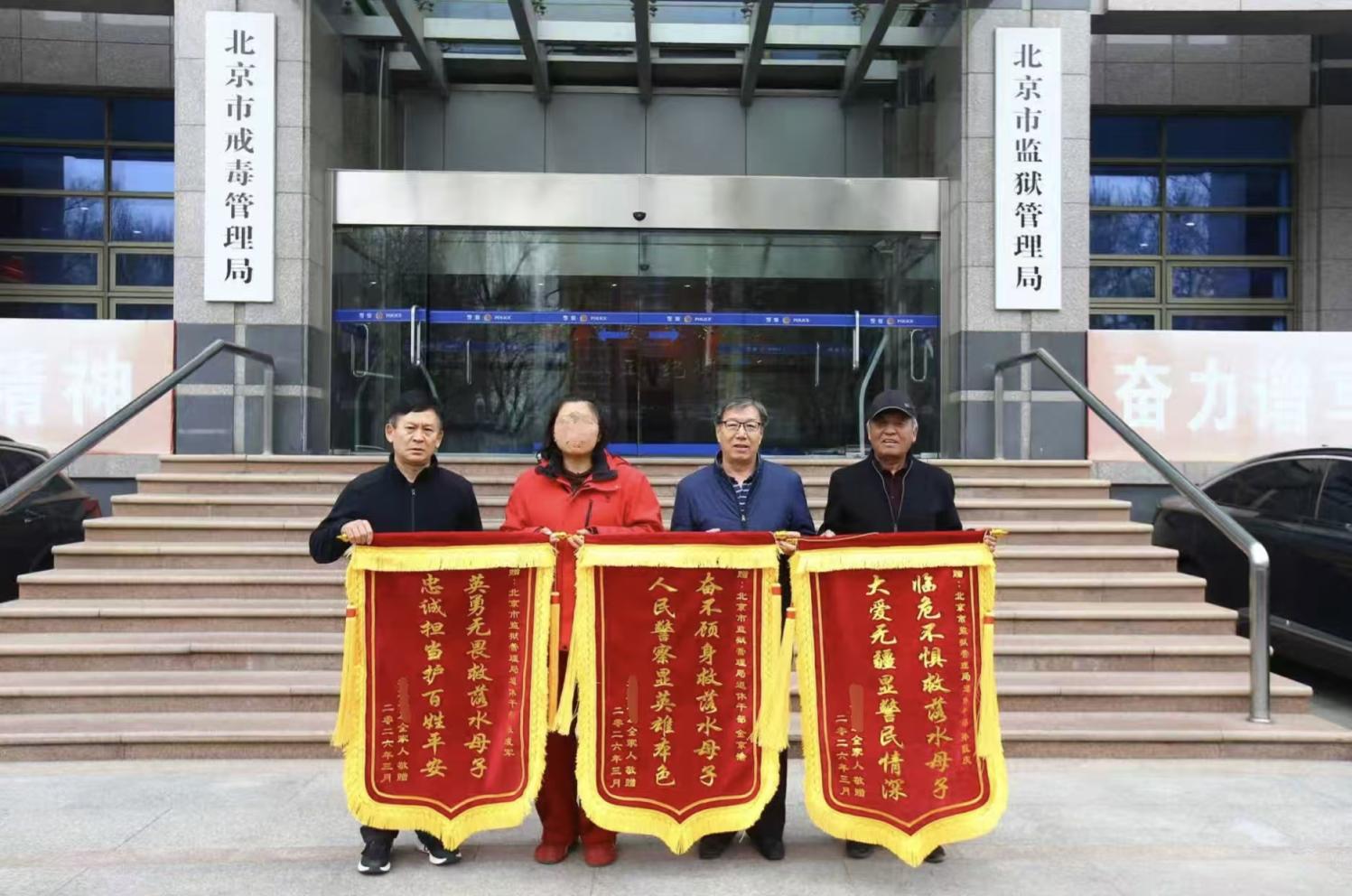 “救命恩人,谢谢你们……”3月17日下午,在北京市监狱管理局见到救了自己和儿子的3位退休民警时,怀抱锦旗的边女士扑通一下跪在地上表达心中感激。“这可受不起,快起来。”3位退休民警赶忙把她搀起来。