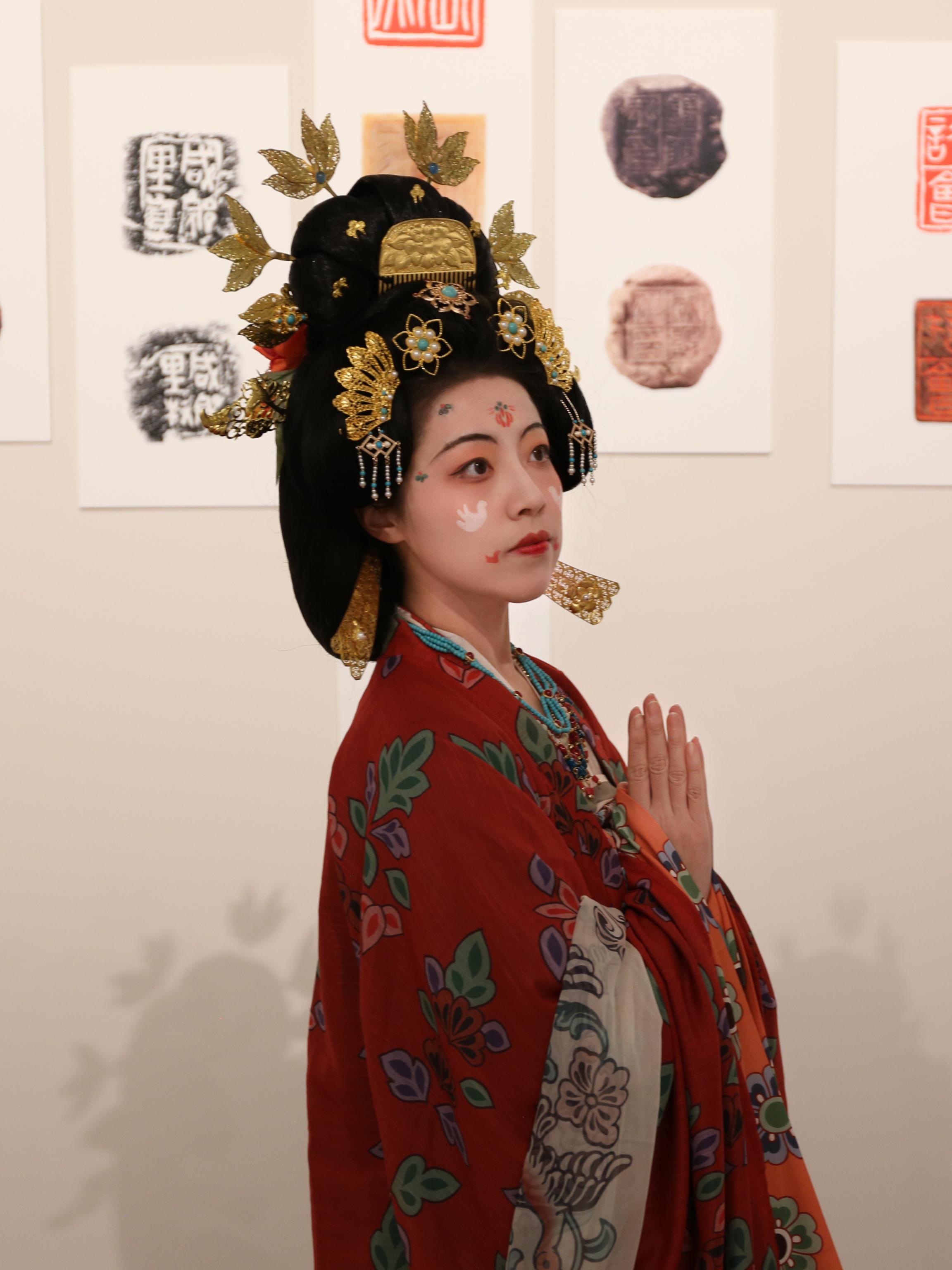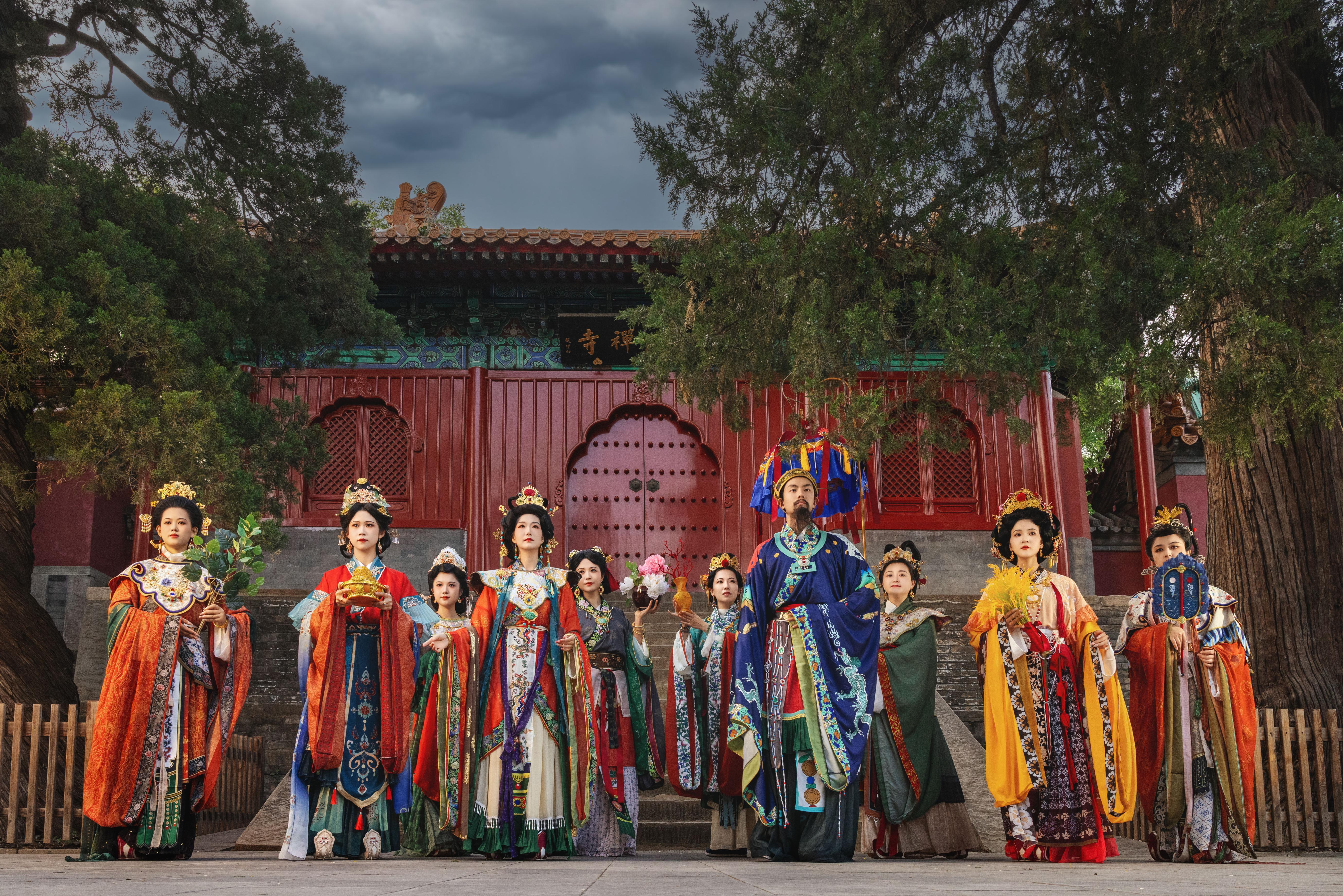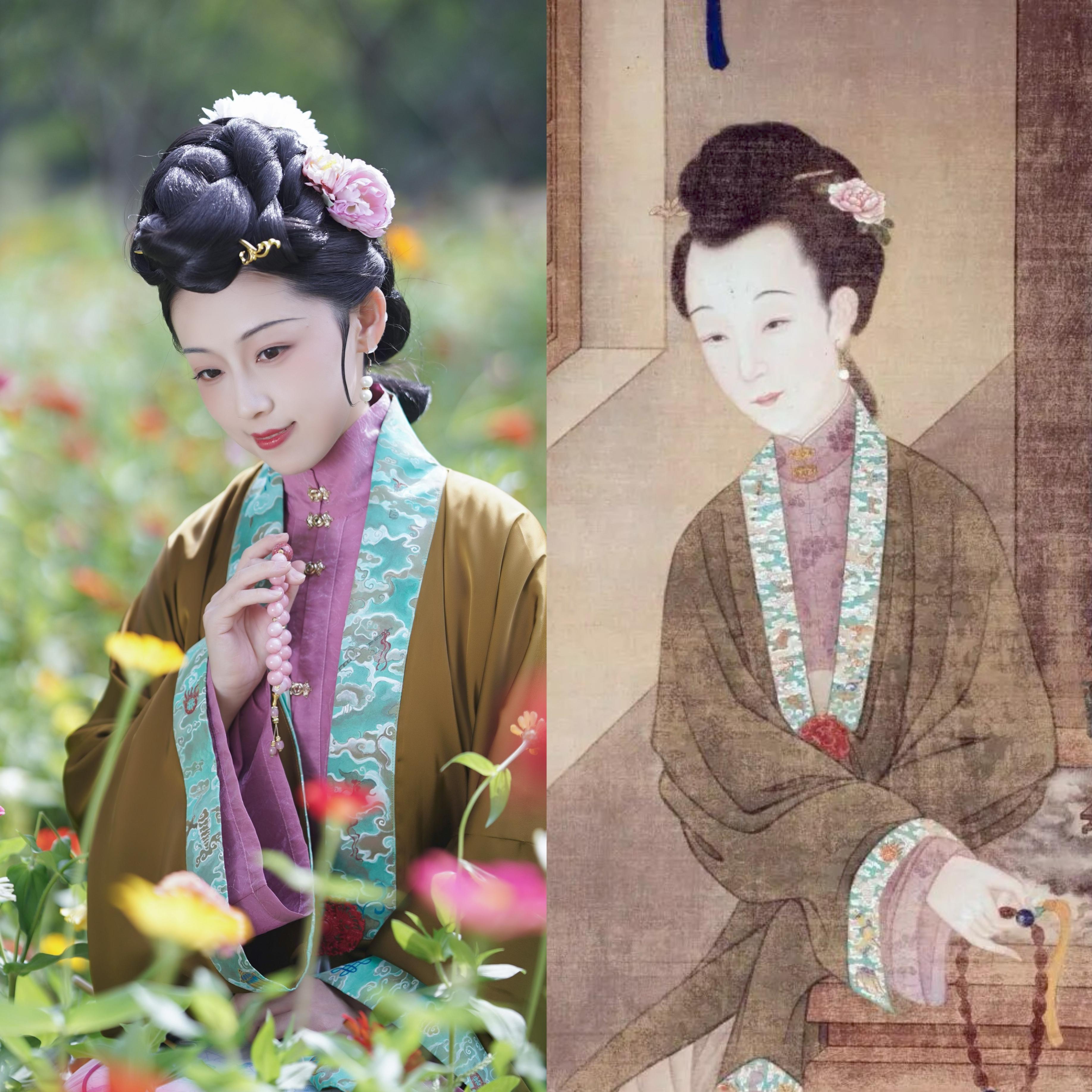 圆明园的十二美人图原是屏风上的珍贵文物,如今原件珍藏于故宫博物院,是名副其实的镇馆之宝,也是圆明园历史文化的重要载体。为了让这份美重回故地,金钰锦带着团队对照文物原图复刻服饰纹样、还原妆容造型,从衣料的质感、配饰的细节,到人物的神态、动作,都力求与原作一脉相承。