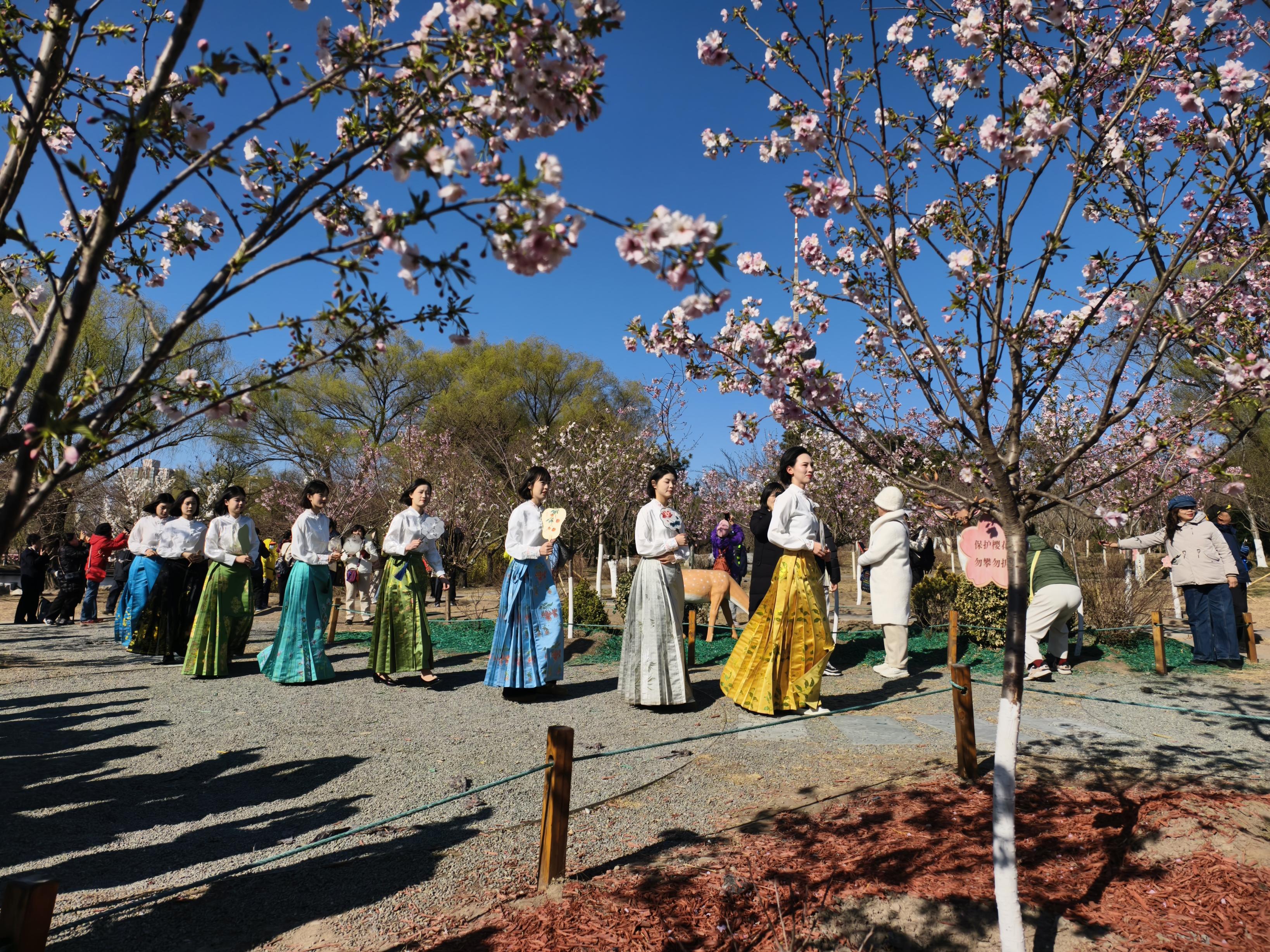 “我们其实无法改变樱花盛开的时长。人工培育主要作用于花苞萌发之前,一旦花苞绽放,开花速度便会加快,此时人为干预已很难再影响开花进程了。”刘东骏介绍,公园能够让花期持续的秘诀绝非延长单一品种花期那么简单,而是靠品种错峰搭配实现的。园艺队会根据樱花品种的花期给它们“排好班”,等待花儿次第开放。