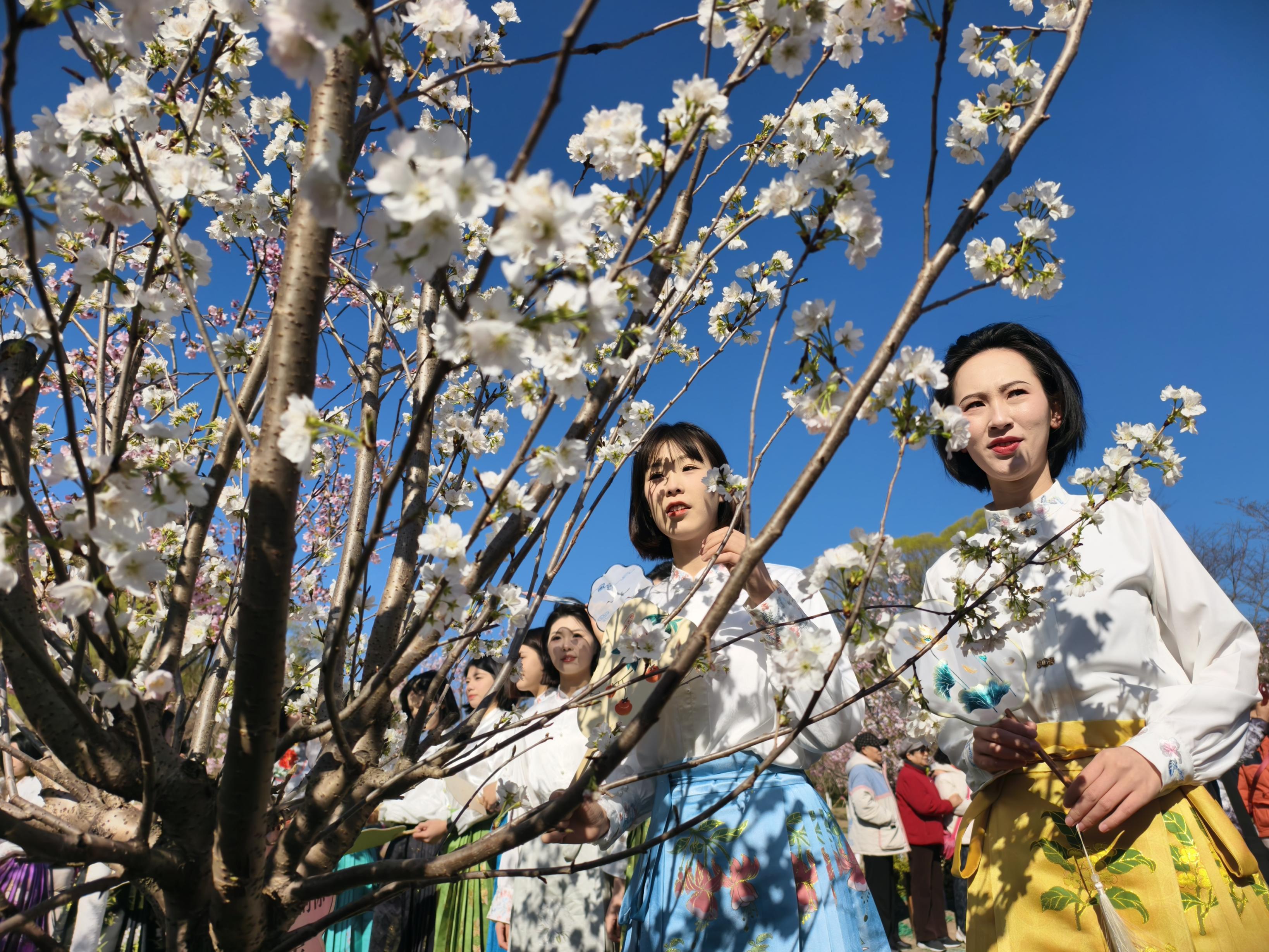 比如春节期间在小樱驿站里,团队精心筛选早中晚不同花期的品种,由花期最早的“河津”“华中”领衔,然后是花期稍晚几天的“旭山”“梅雪”接力,最后由“大渔”“阳光”“楚锦”等品种收尾,就这样,不同品种依次绽放、无缝衔接,硬生生把短短一周的花期拉长至近一个月,从小年到元宵节,天天有花看。而在刚开幕的樱花文化活动中,之所以让“香妃”首先亮相,也是因为“香妃”的开花时间较早。