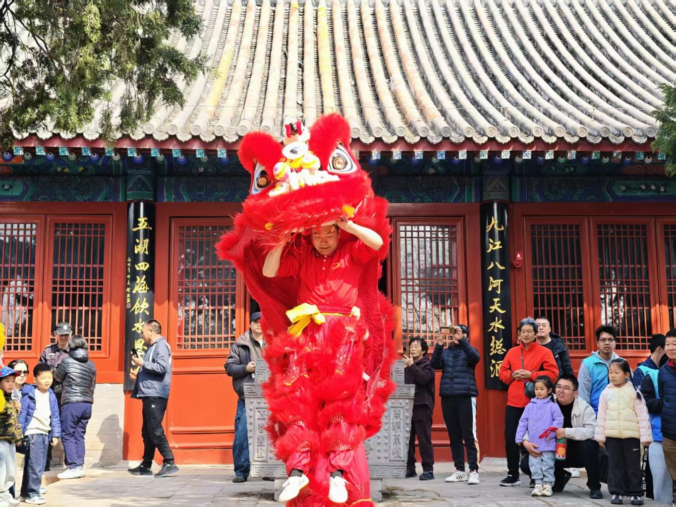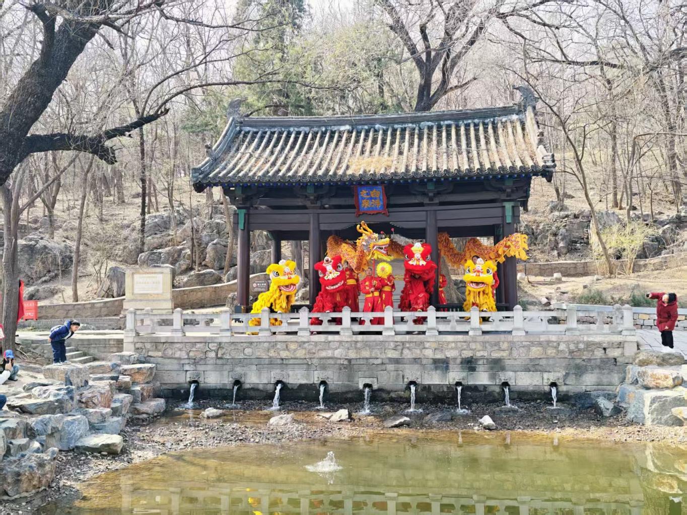 大运河源头遗址公园春意盎然,游人登高祈福,古韵悠长。白浮泉九龙池吐水,桃花柳绿相映成趣;龙狮飞舞,锣鼓喧天,非遗展演热闹非凡。登龙山、拜古寺,祈愿风调雨顺、万事顺遂,一派祥和喜庆。
