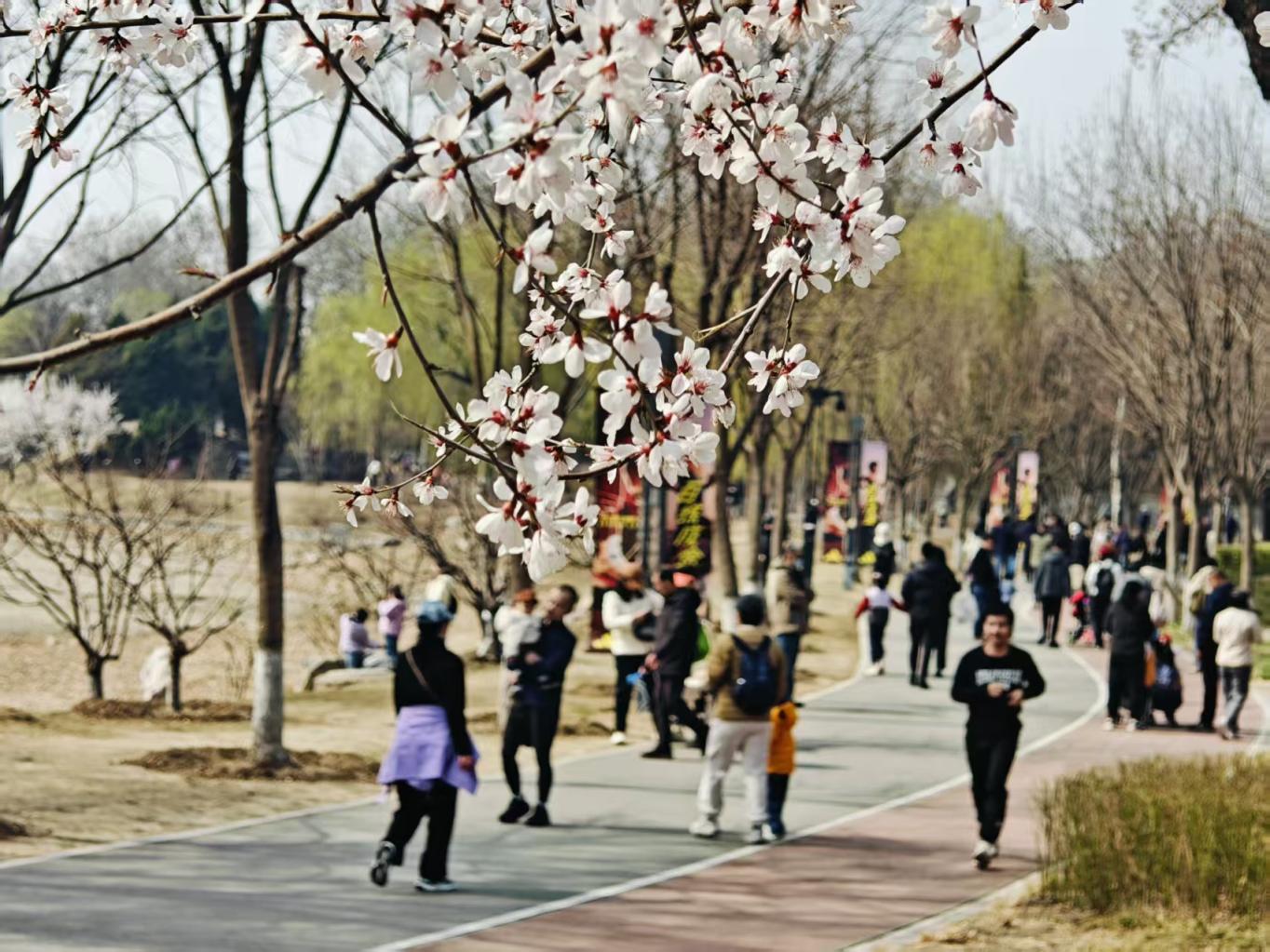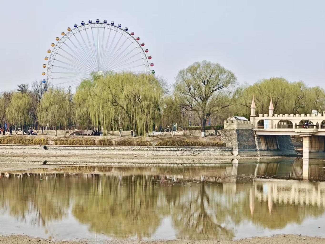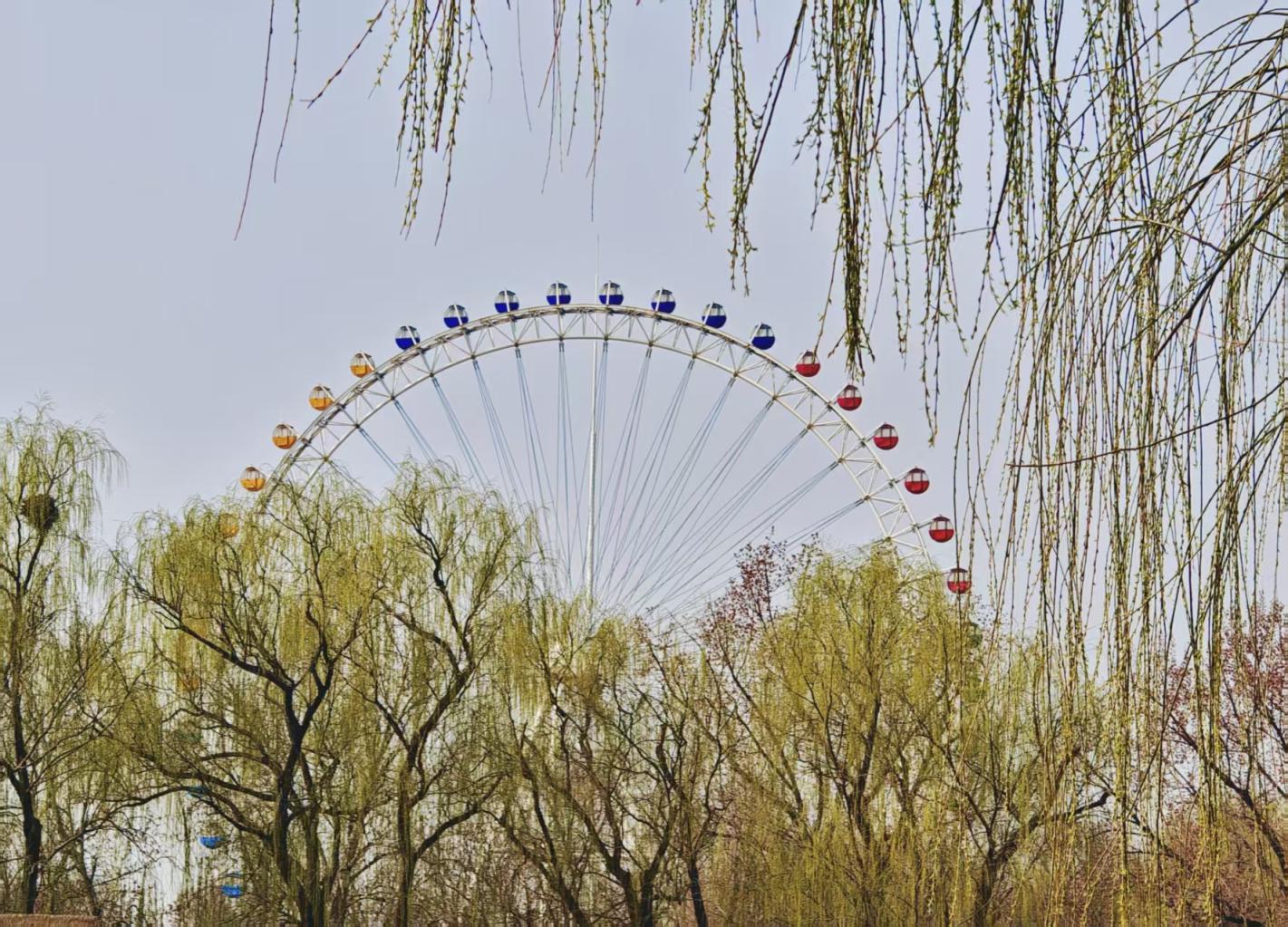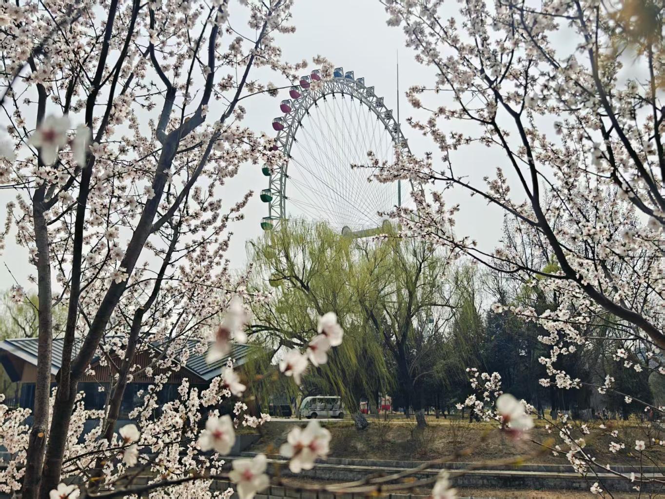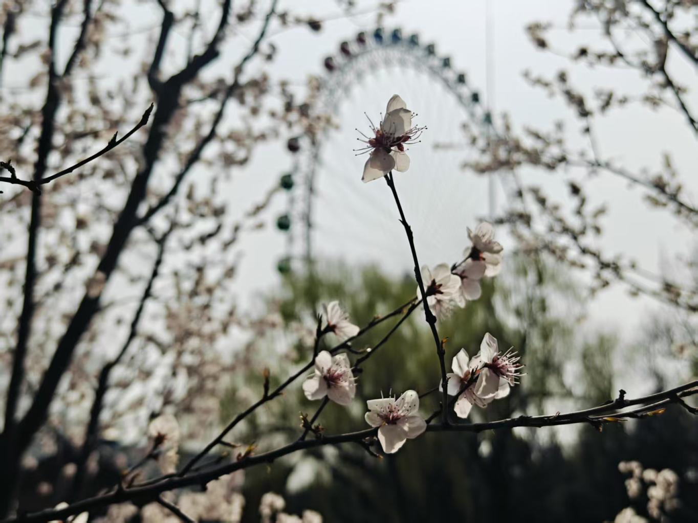 周六的龙潭中湖游人如织,春意正浓。桃花灼灼绽放,柳丝新绿初绽,摩天轮静静矗立在湖畔,一派明媚春光惹人沉醉。