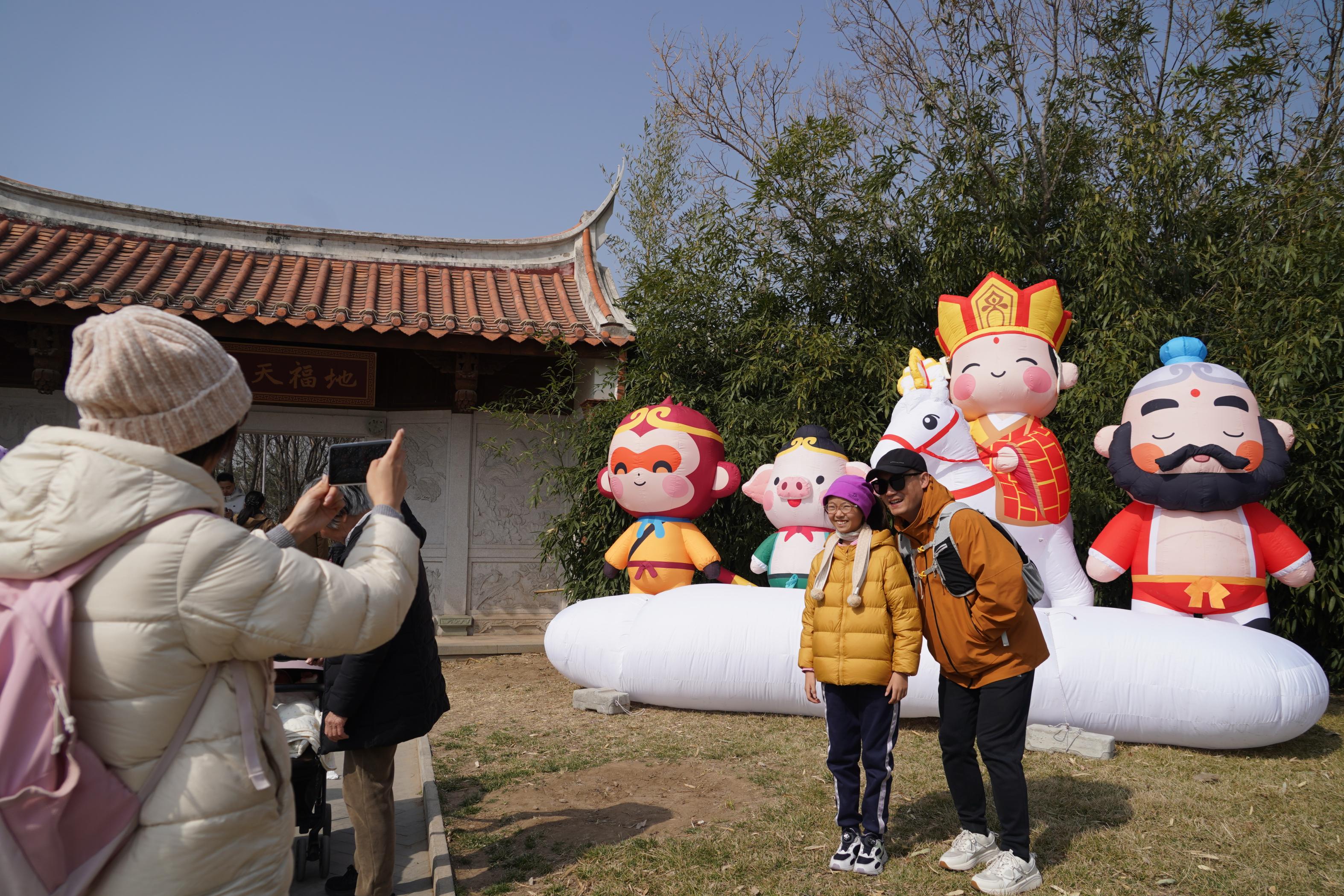 本届嘉年华推出几大核心板块:春日食光市集设75个特色摊位,汇聚美食、文创与非遗手作;非遗手工体验营周末开课,漆扇、风筝、拓印等技艺可亲手制作;凡仙记西游IP在闽园开启亲子沉浸式互动;鹰山桃花+永定塔登塔打造春日观景打卡线,实行分时段预约;首届“躺平节”主打草坪休闲体验,放松享受春日乐趣,倡导松弛游园新方式。