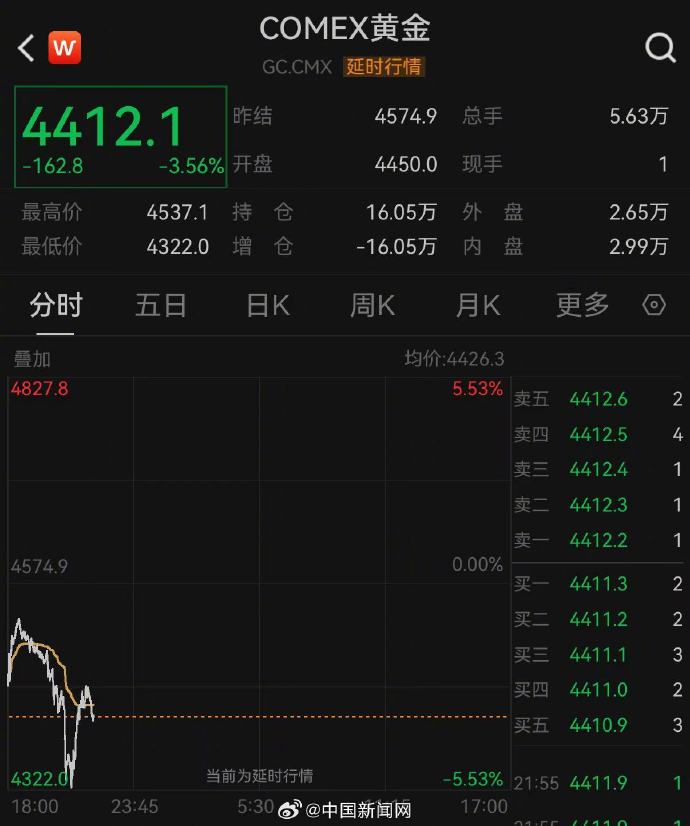 3月23日,国际金价再次大跌。截至10时10分,COMEX黄金一度跌至4322美元/盎司,跌幅超5%;伦敦现货黄金一度跌至4318.825美元/盎司,跌幅超过3%。