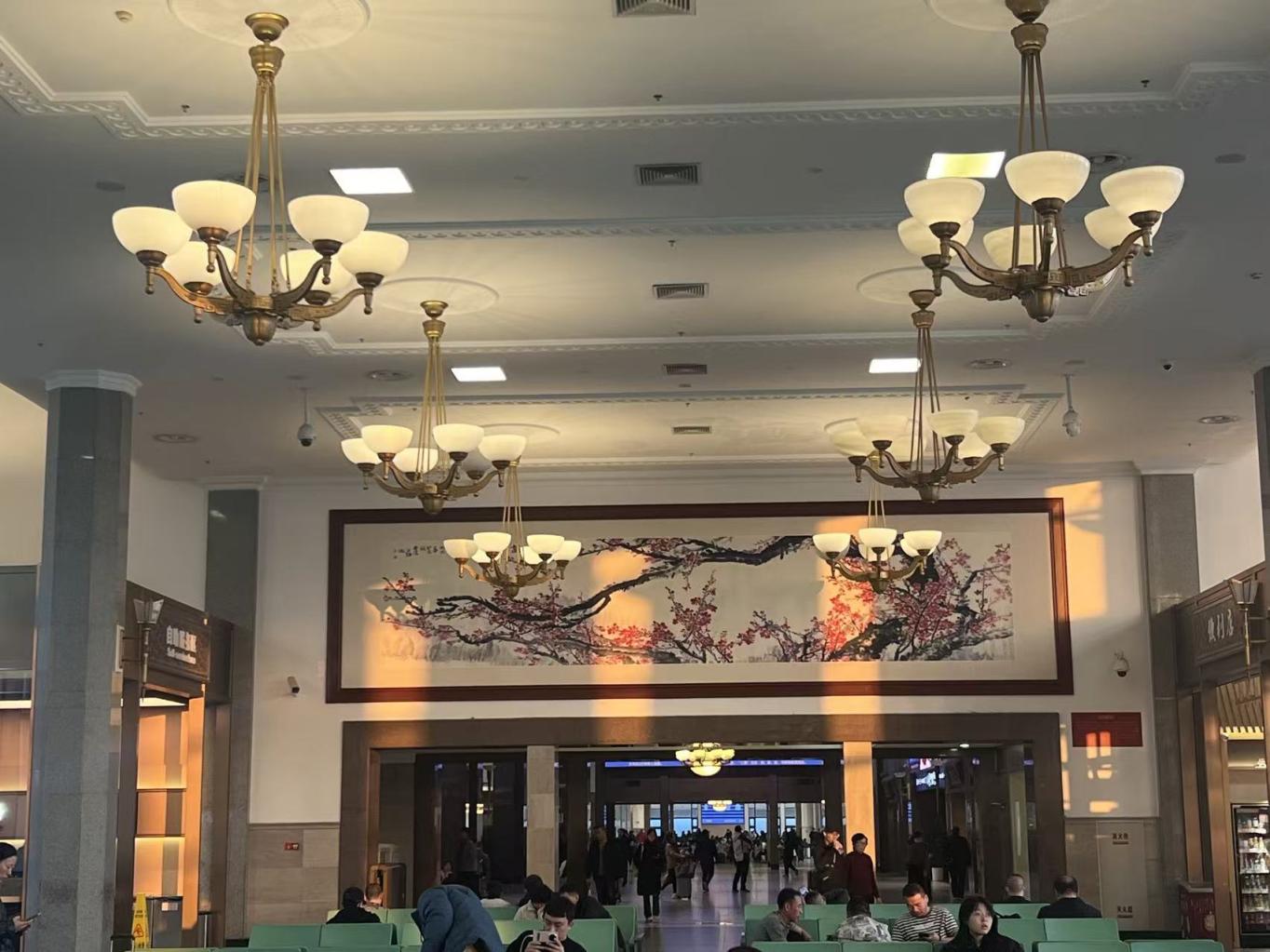 笔墨丹青与复古建筑交相辉映,旅客在候车间隙漫步其间,仿佛置身流动的美术馆……北京站陈列30幅站藏名家画作,一室一风格,让旅客在方寸之间感受历史韵味。