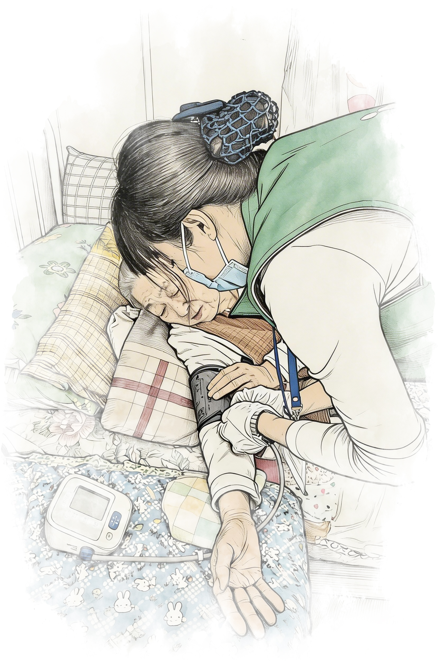 9点50分,和往常一样,王艳红提前十分钟抵达老山西里小区,94岁的尚大爷正在等候。由于高龄,老人腿脚浮肿、听力比较差,肢体活动有些受限,只能卧床静养。王艳红俯身凑近老人耳边,提高音量问好,随后开始准备,规范操作肩关节被动活动指导,轻柔地为老人活动肩颈,缓解关节疼痛。她动作娴熟,一边做护理,一边陪着老人唠着家常。测血压、量体温,一套专业服务有条不紊,整整一个半小时,她没有丝毫懈怠。临走时,尚大爷颤巍巍地挥手,一遍遍说着“谢谢”。这份认可,让王艳红心里满是暖意。