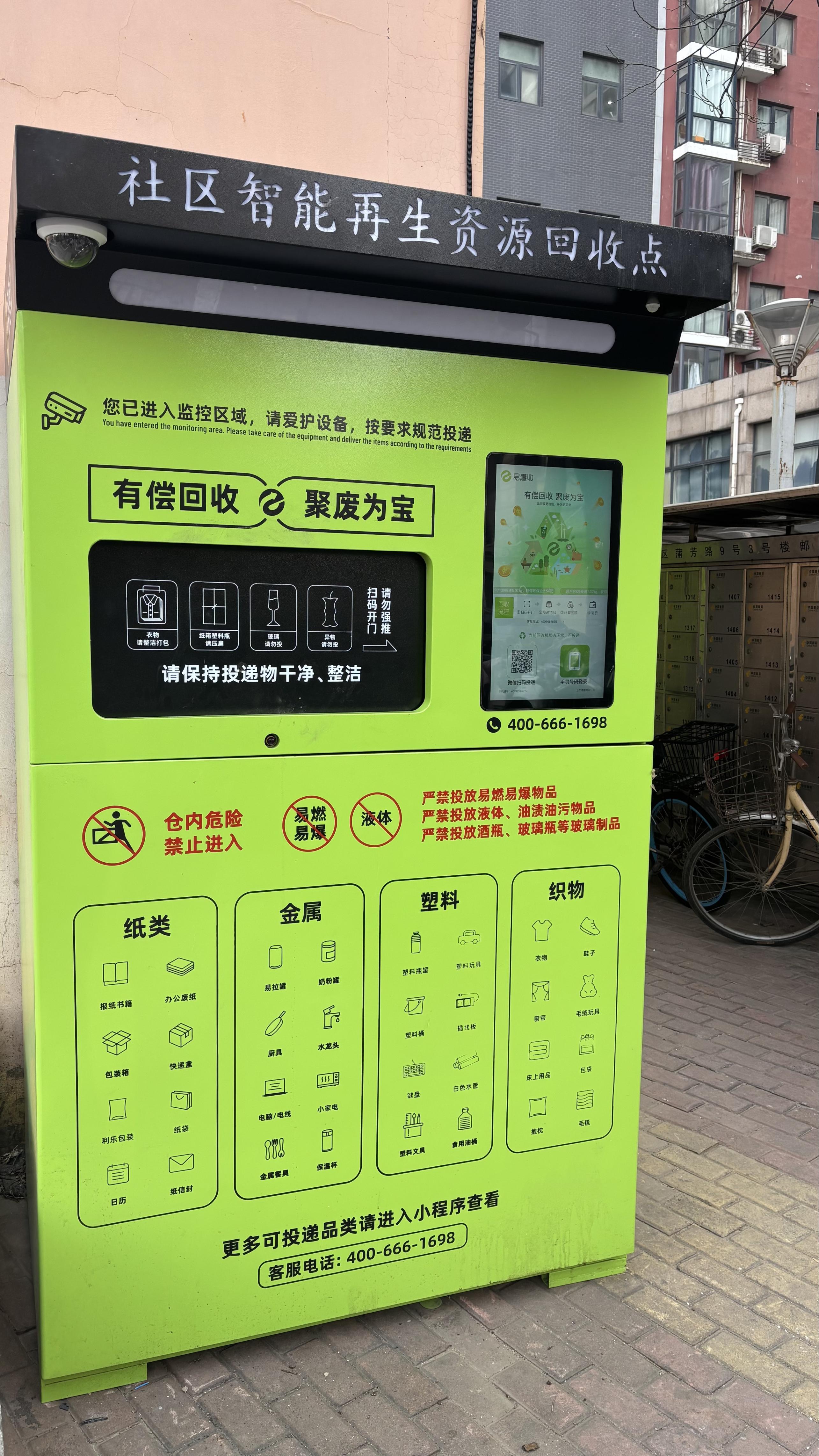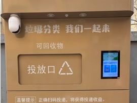 “您好,欢迎使用智能回收箱!”在自新路南口,靠墙放置着一台两米多高的金棕色铁皮箱。当有路人驻足凑近至半米左右距离,便会被摄像头“捕捉”,听到这句热情的“揽客播报”。