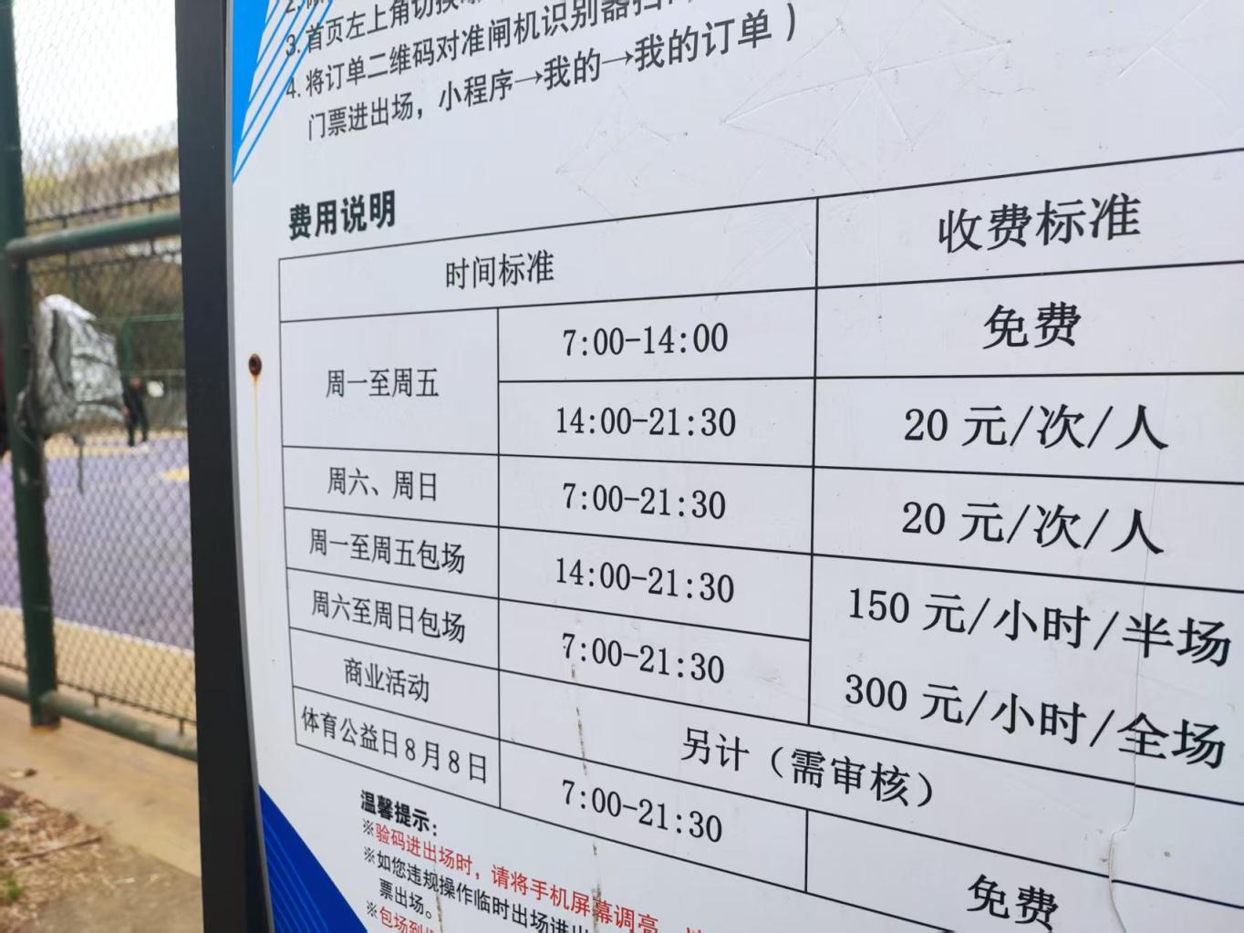 球场只在工作日上午和中午免费