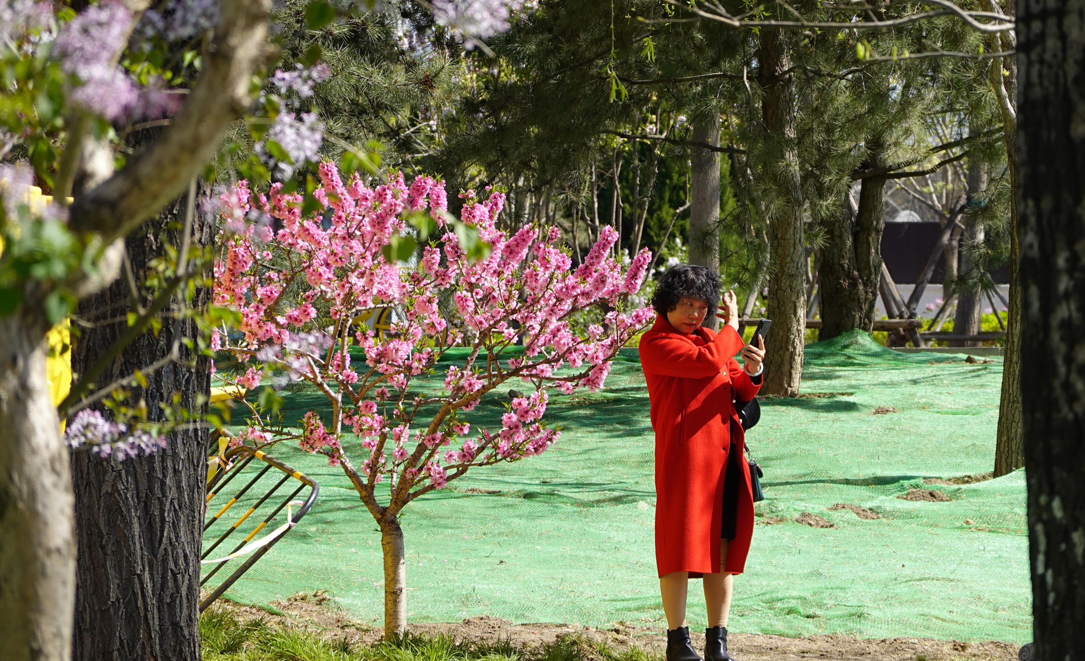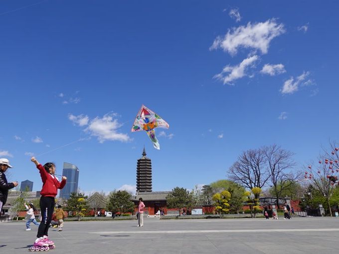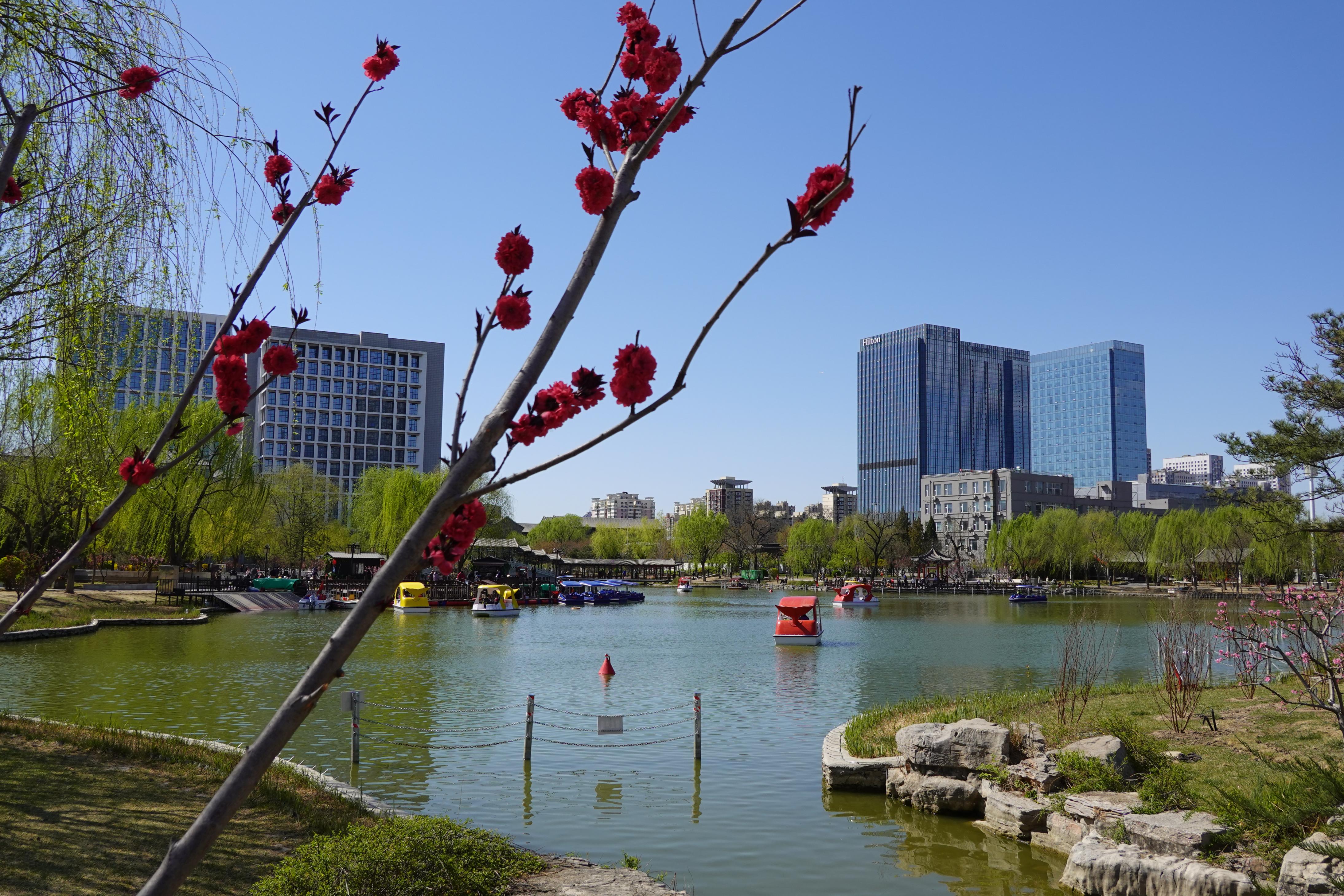 4月6日,清明假期最后一天,北京阳光明媚、春风和煦,市民在通州燃灯塔下泛舟湖上,纸鸢逐春。