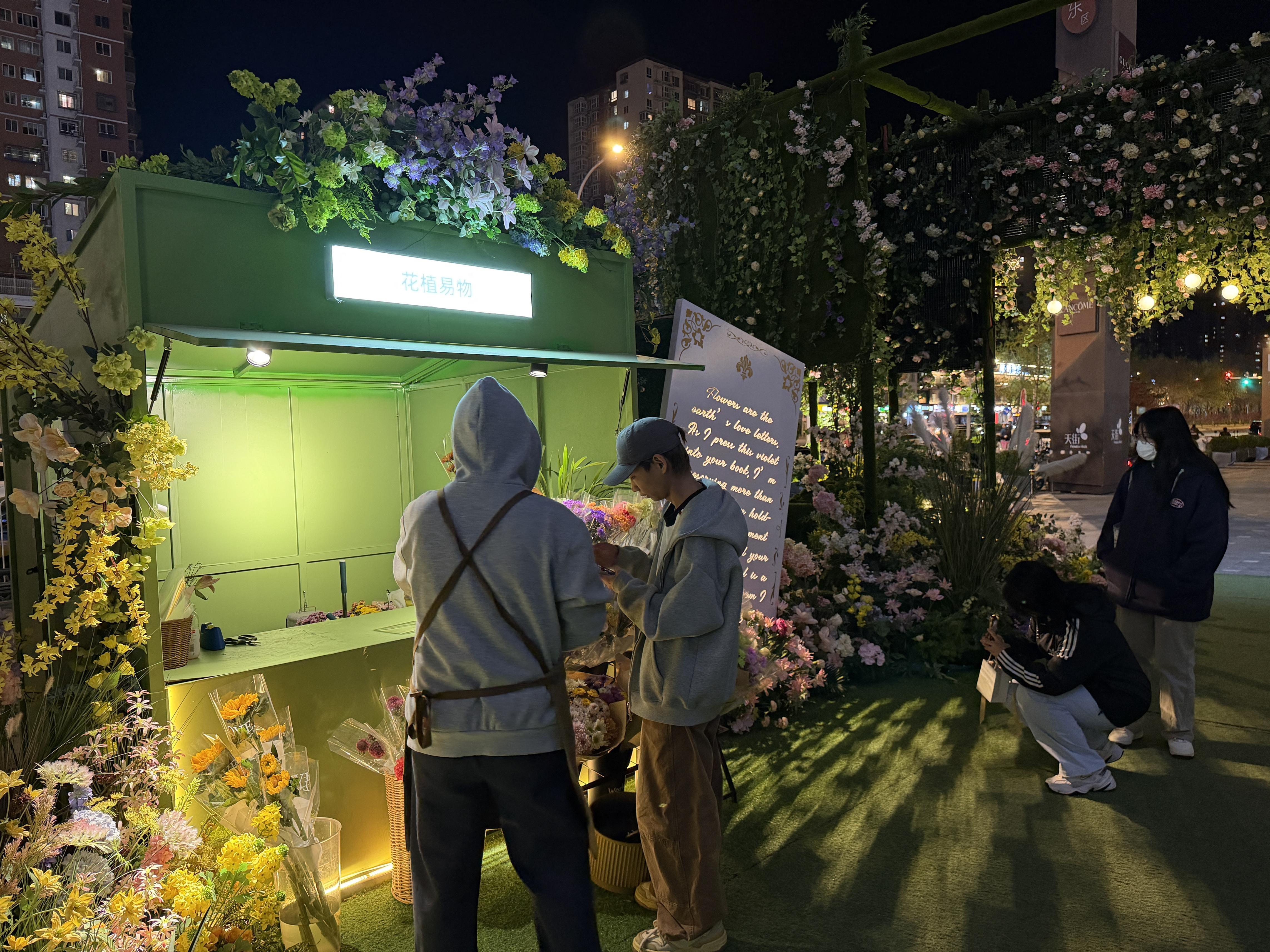 在位于朝阳区的龙湖北京长楹天街商圈,一场名为“天街醒春季——长楹Fa市”的春日主题市集正在举办。步入长楹天街东1门外广场,只见层层叠叠的花卉错落铺展,百米鲜花长廊前人潮涌动,市民和游客们三五成群,在由各色花束“织就”的艺术墙前驻足拍照,大伙儿直呼:“宛若看到了城市里的莫奈花园。”