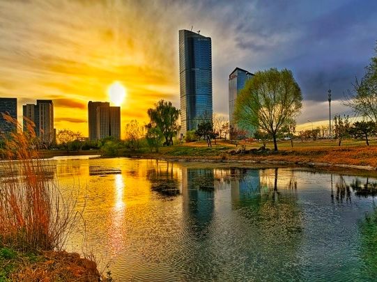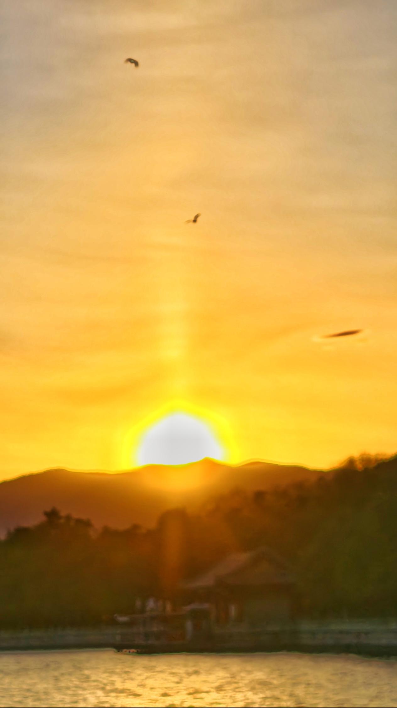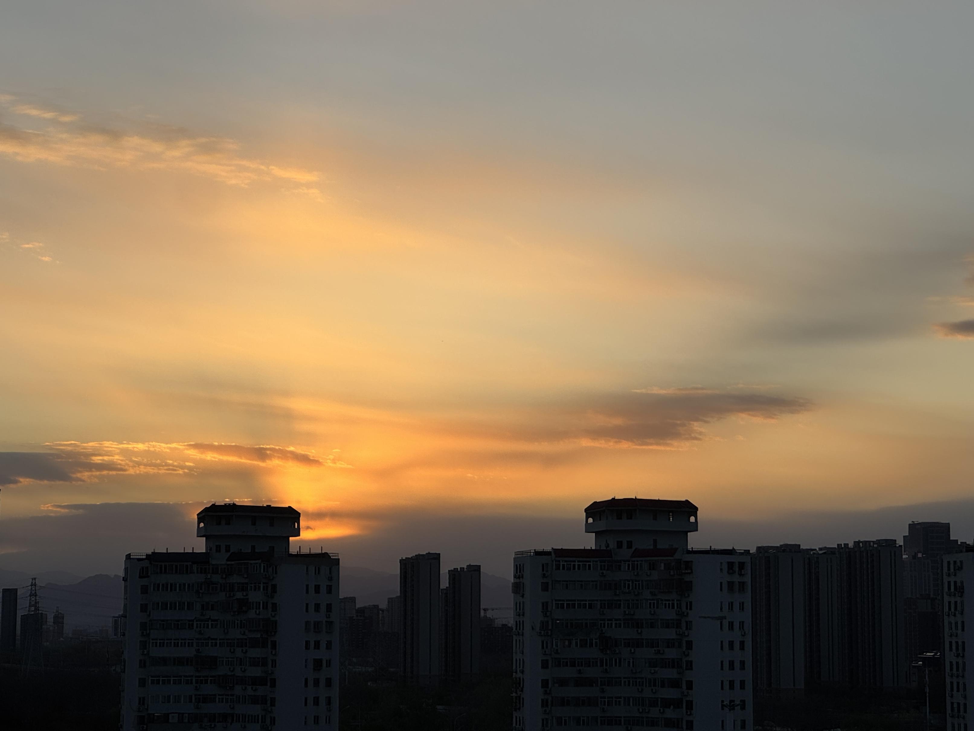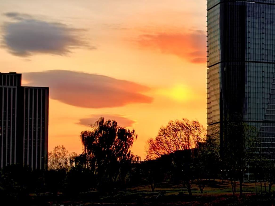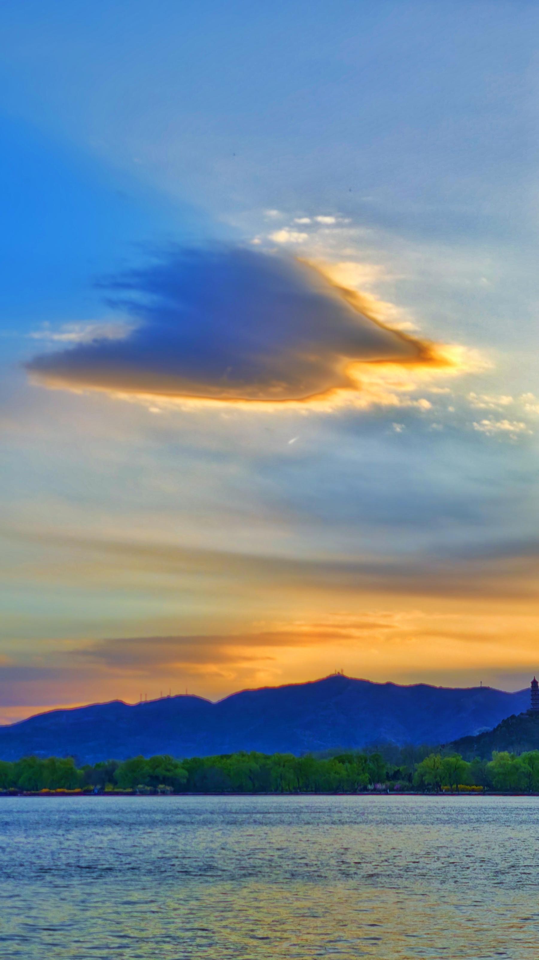 碧空蓝得如丝绒般温润柔和,点缀着金灿灿的落日,美得如梦如幻。