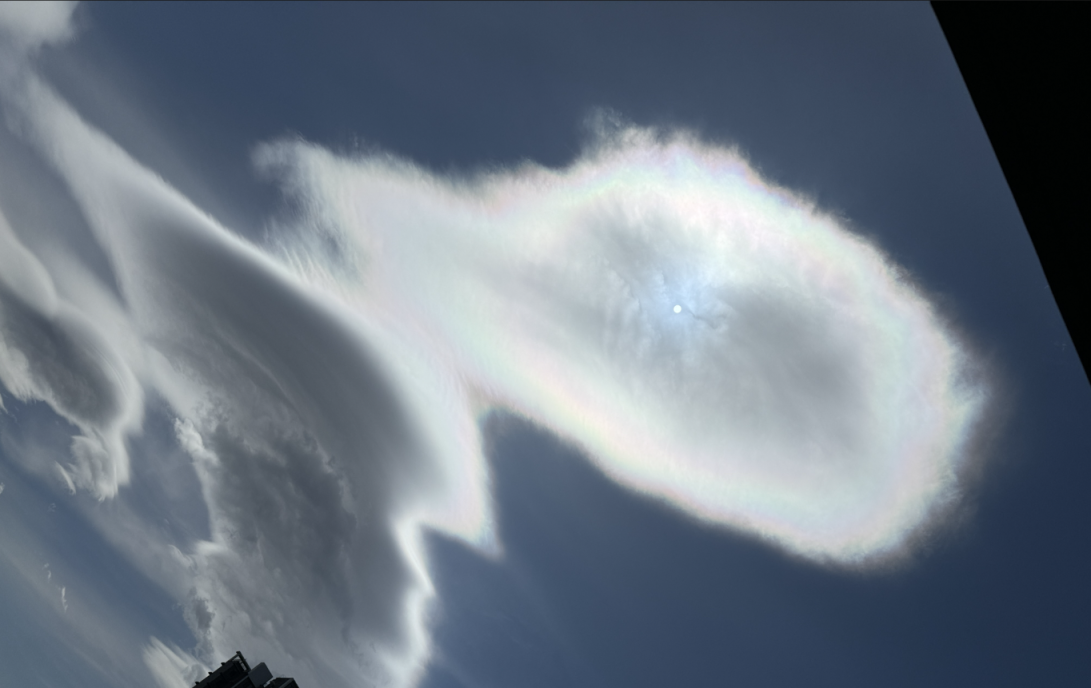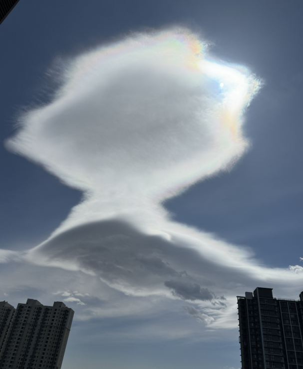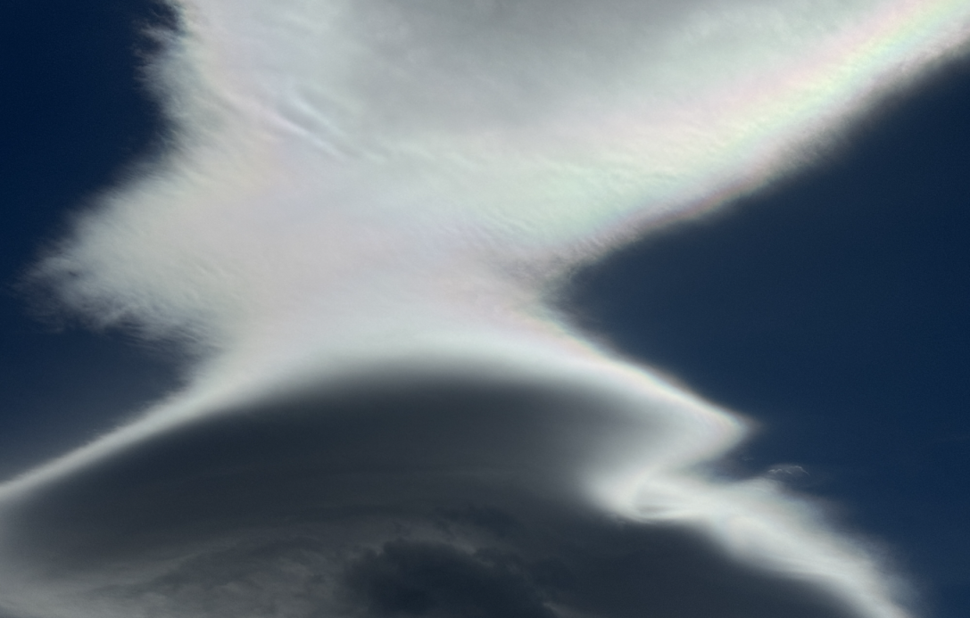 昨天北京大风刮出了惊艳天空,“飞碟云(荚状云)”和“七彩云(虹彩云)”同时出现,仔细看还有日晕。