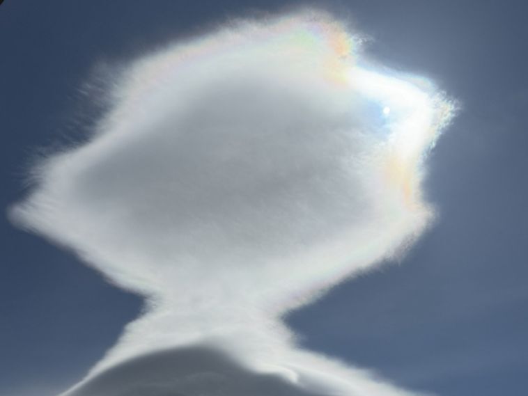 “七彩祥云”属于高积云,是由于云里的冰晶对太阳光的衍射而形成,天气晴好时容易出现。“飞碟云”属于荚状高积云,通常出现在大风天气里,如果风“给力”还能刮出更多形状。