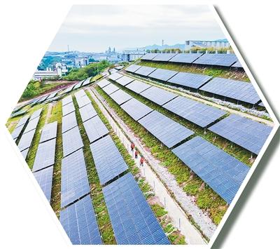 重庆市长寿区鼓励企业利用荒山荒坡、厂房屋顶等空间,发展光伏发电产业项目。图为4月1日,在当地一家公司周围边坡,国家电网重庆长寿供电公司员工在巡检光伏发电设备。况 敏摄(人民视觉)