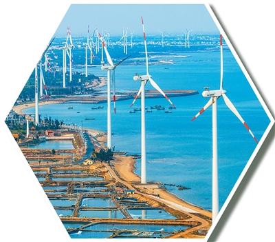 4月4日,广东省湛江市徐闻县角尾乡南极村海边,数十座白色风力发电机组源源不断输送绿色能源。何华文摄(人民视觉)