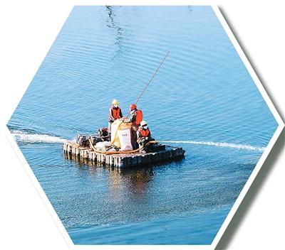 近日,在安徽省芜湖市经济技术开发区凤鸣湖上,工人对水体进行阶段性消毒净化。肖本祥摄(人民视觉)